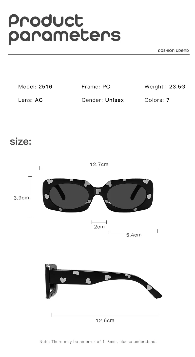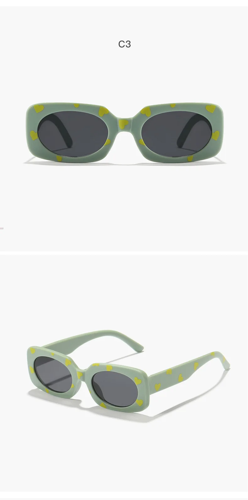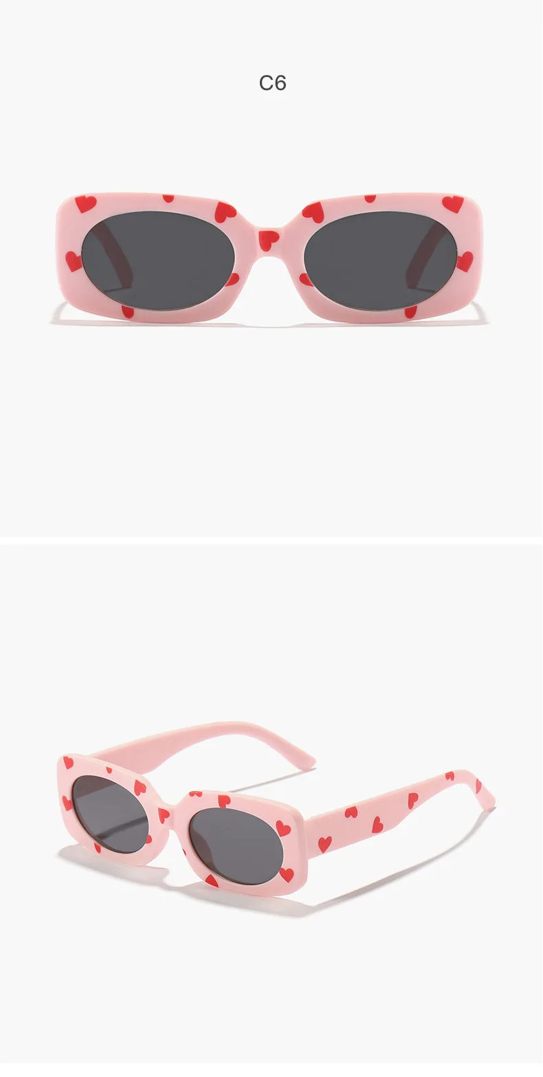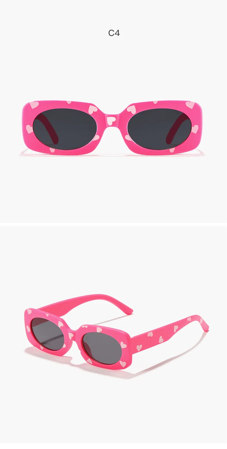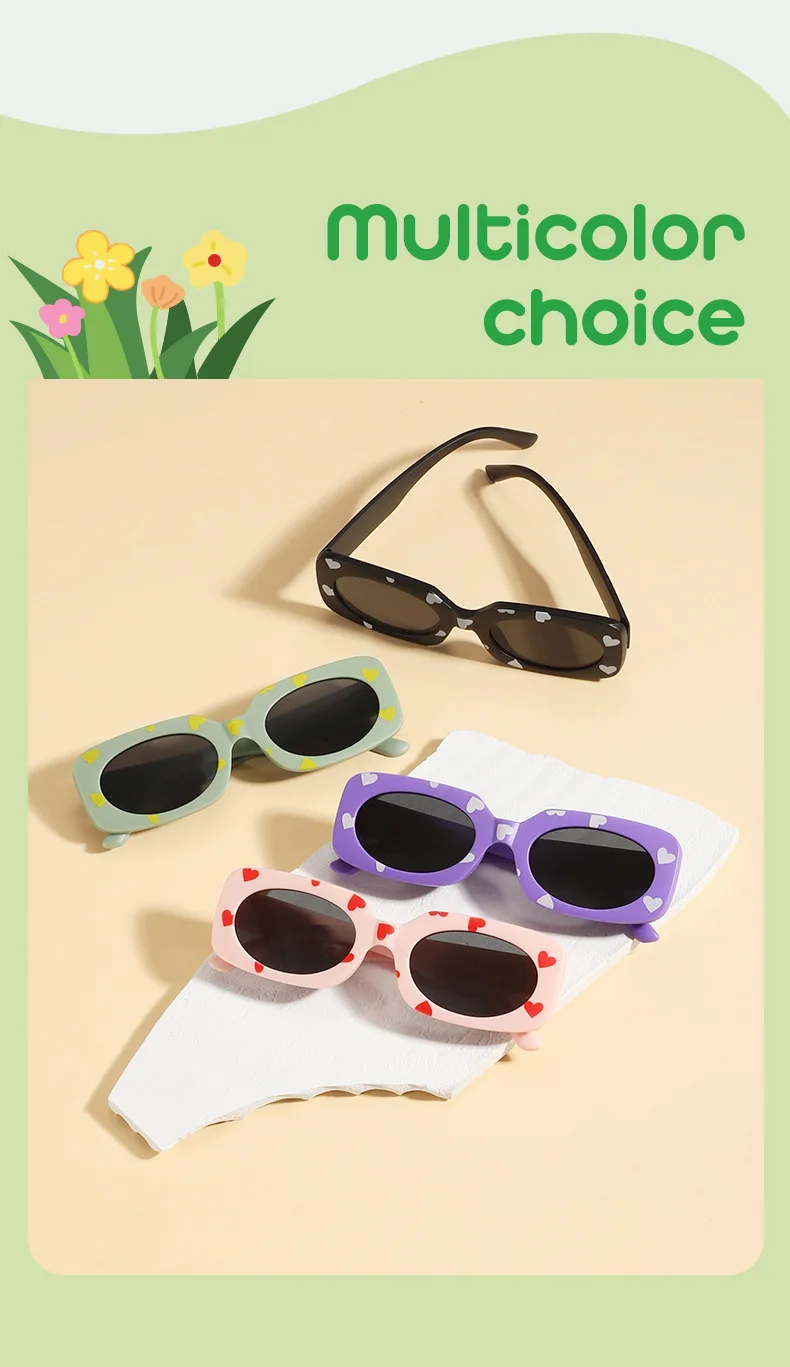 Girls Cute Heart-shaped Sunglasses with Lovely Print for Children Sunglasses Kids Rectangle Eyewear Shades UV400