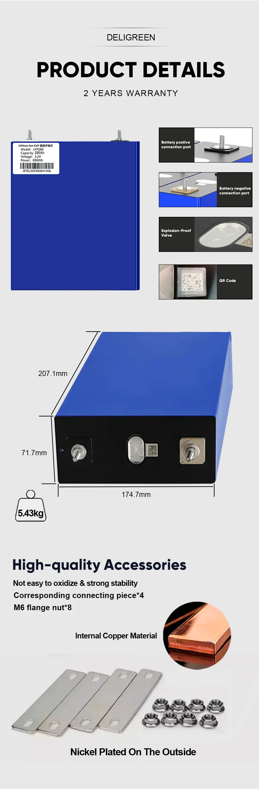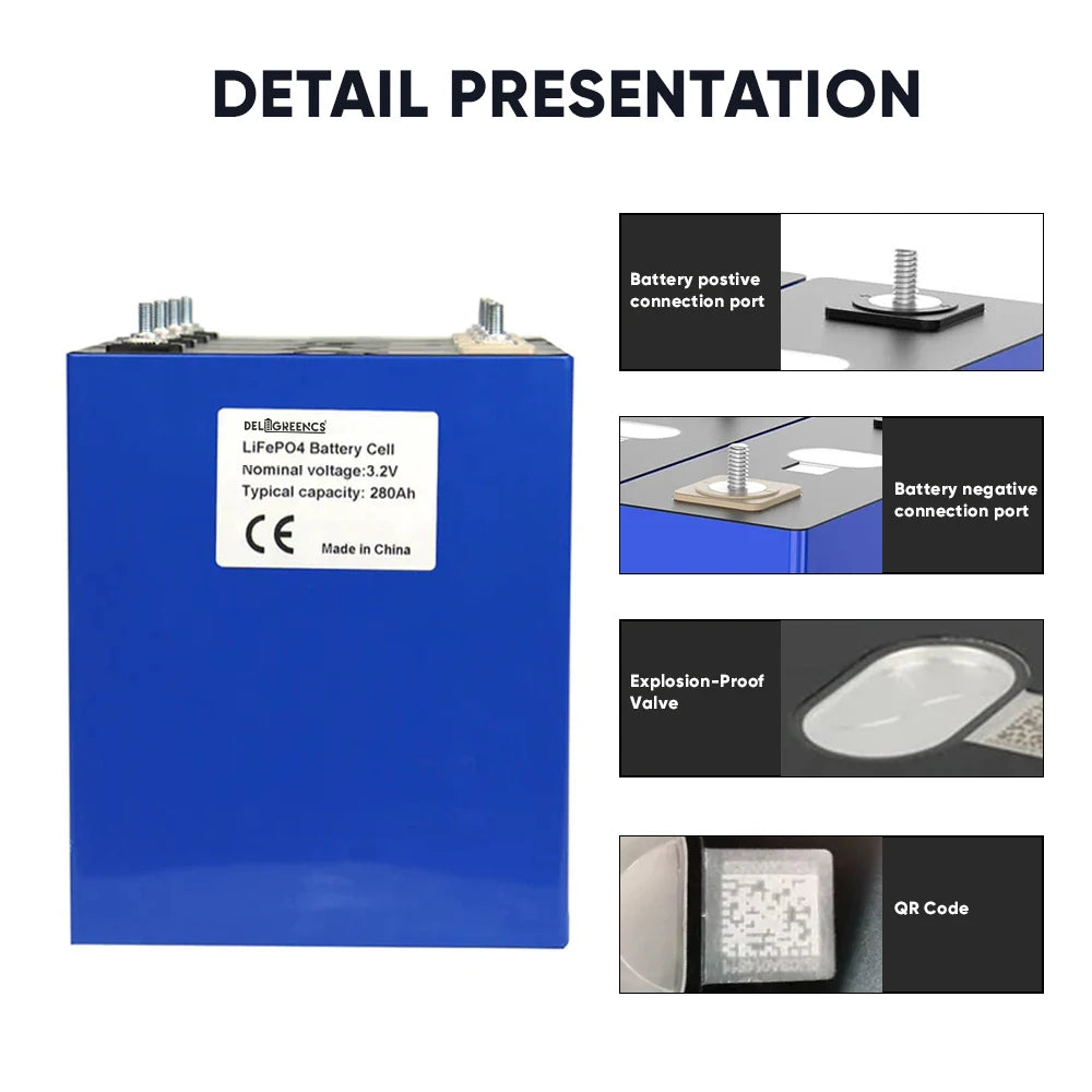 Grade A 280AH Lifepo4 Battery Rechargeable Cell Free Busbars 10000 Cycles Lithium Battery Pack for 48V Solar Power Storage
