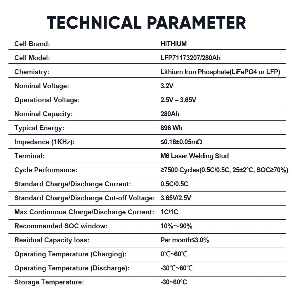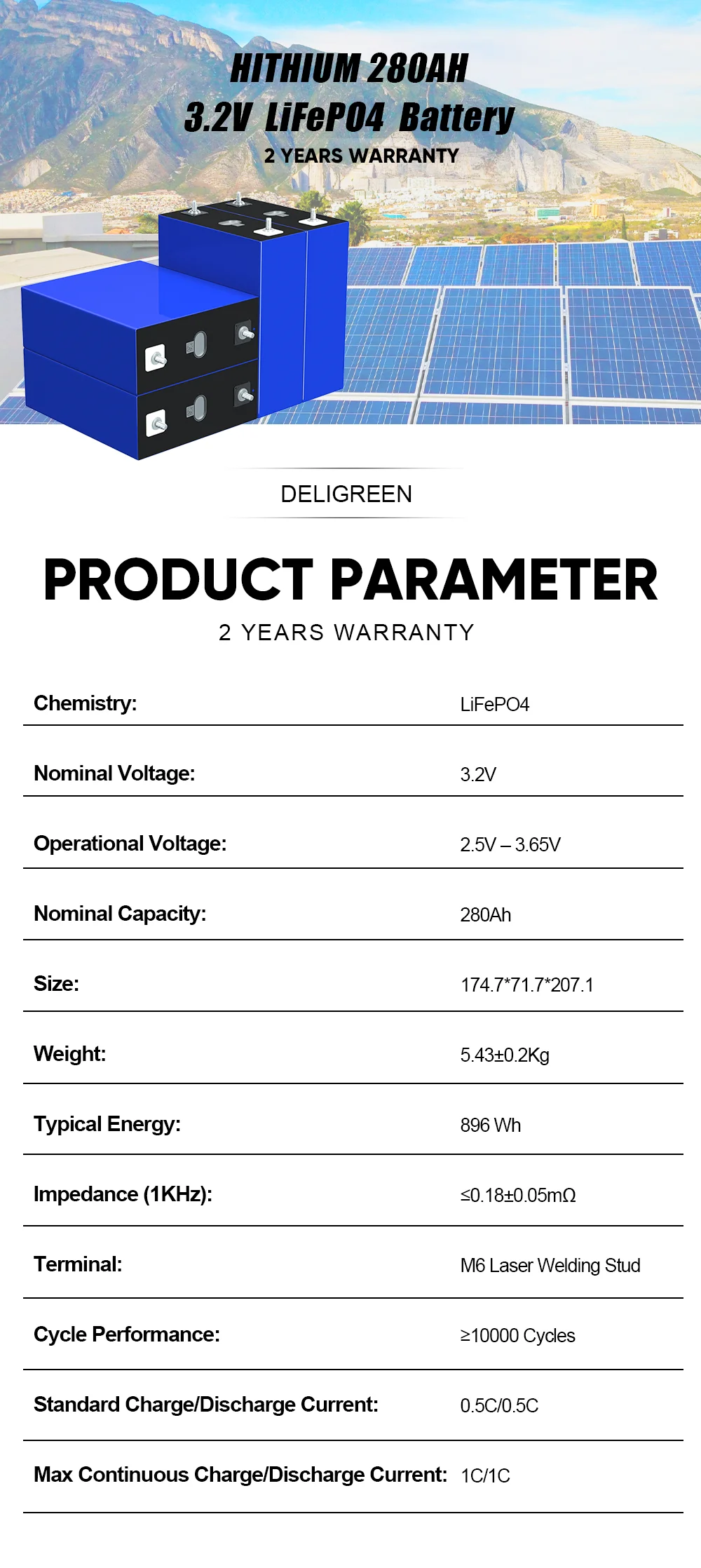 Battery: lithium iron phosphate cell(3.2V 280AH LIFEPO4)