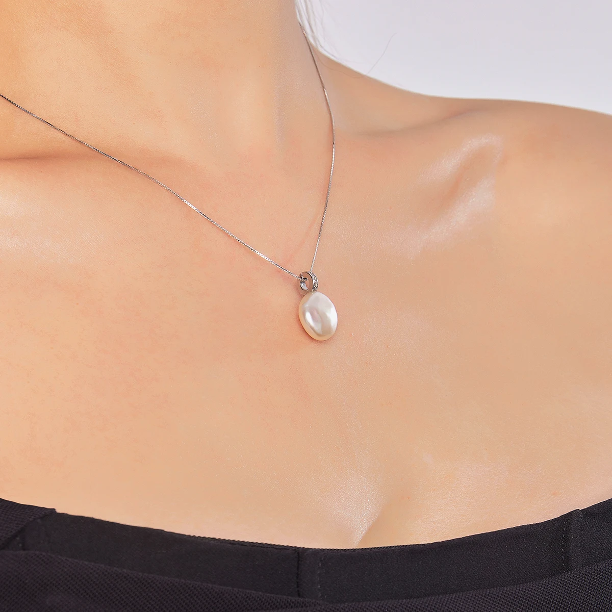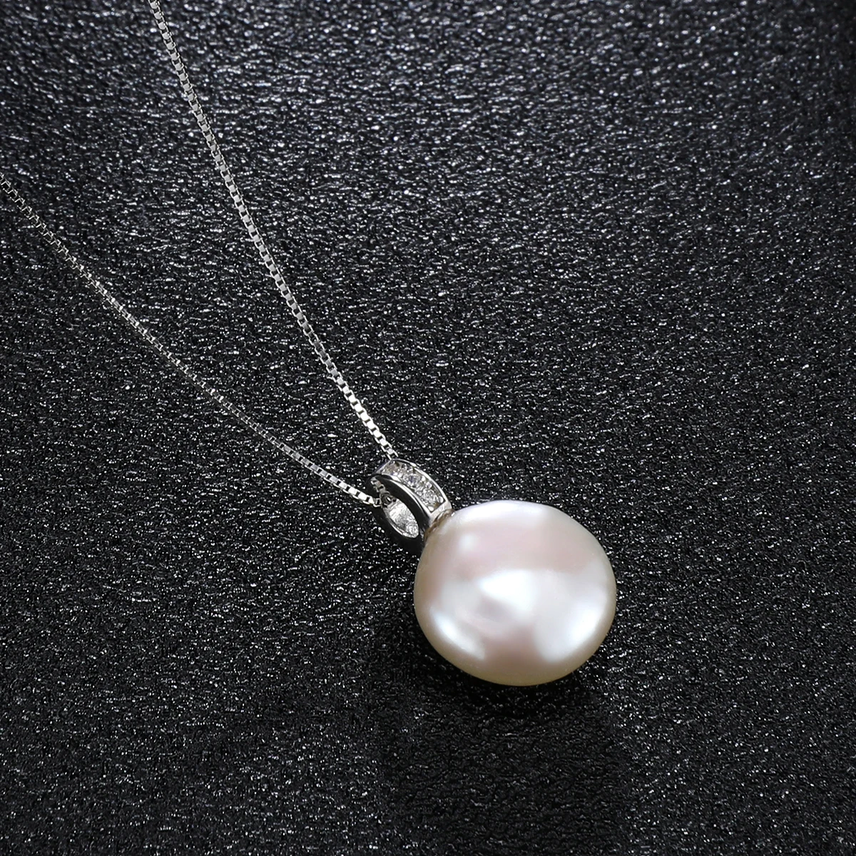 HENGSHENG Simple 12-13mm Freshwater Big Button Shape White Pearl 925 Sterling Silver Pendant Necklace For Women Girls Jewelry