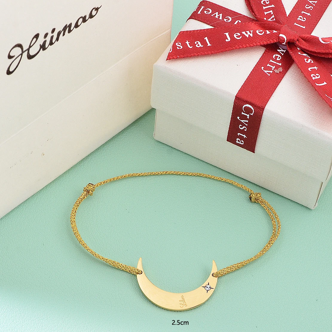 HIIMAO Fashion Stainless Steel Moon shaped Adjustable Gold Rope Bracelet HMB0030