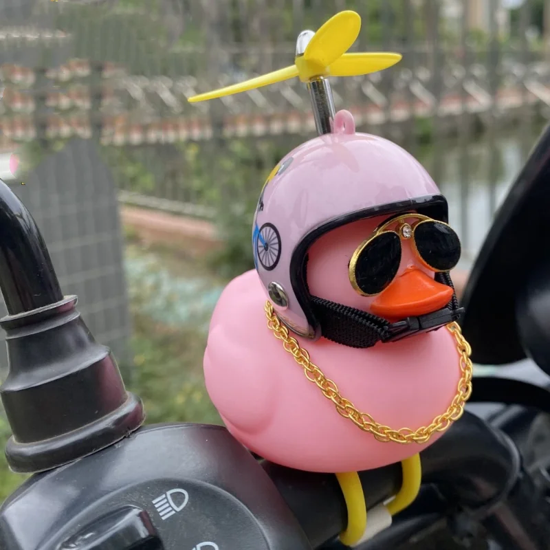 Hot Car Cute Little Pink Duck With Helmet Propeller Wind-breaking Wave-breaking Pink Bike Motorc Riding Auto Internal Decoration