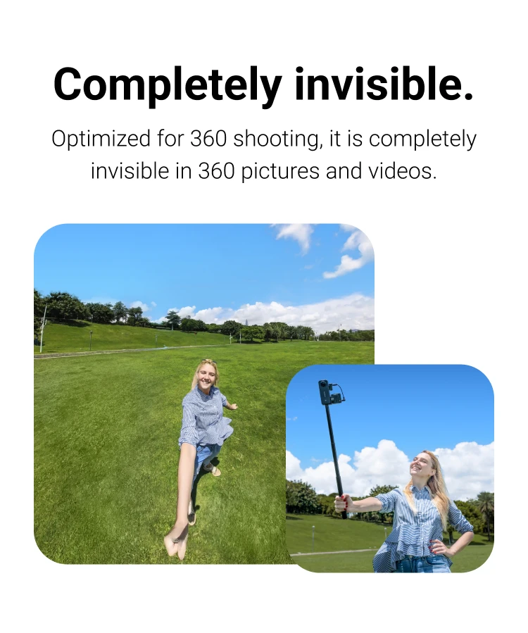Designed for Insta360 X3, totally invisible when you shoot in 360 and upload to the Insta360 app.