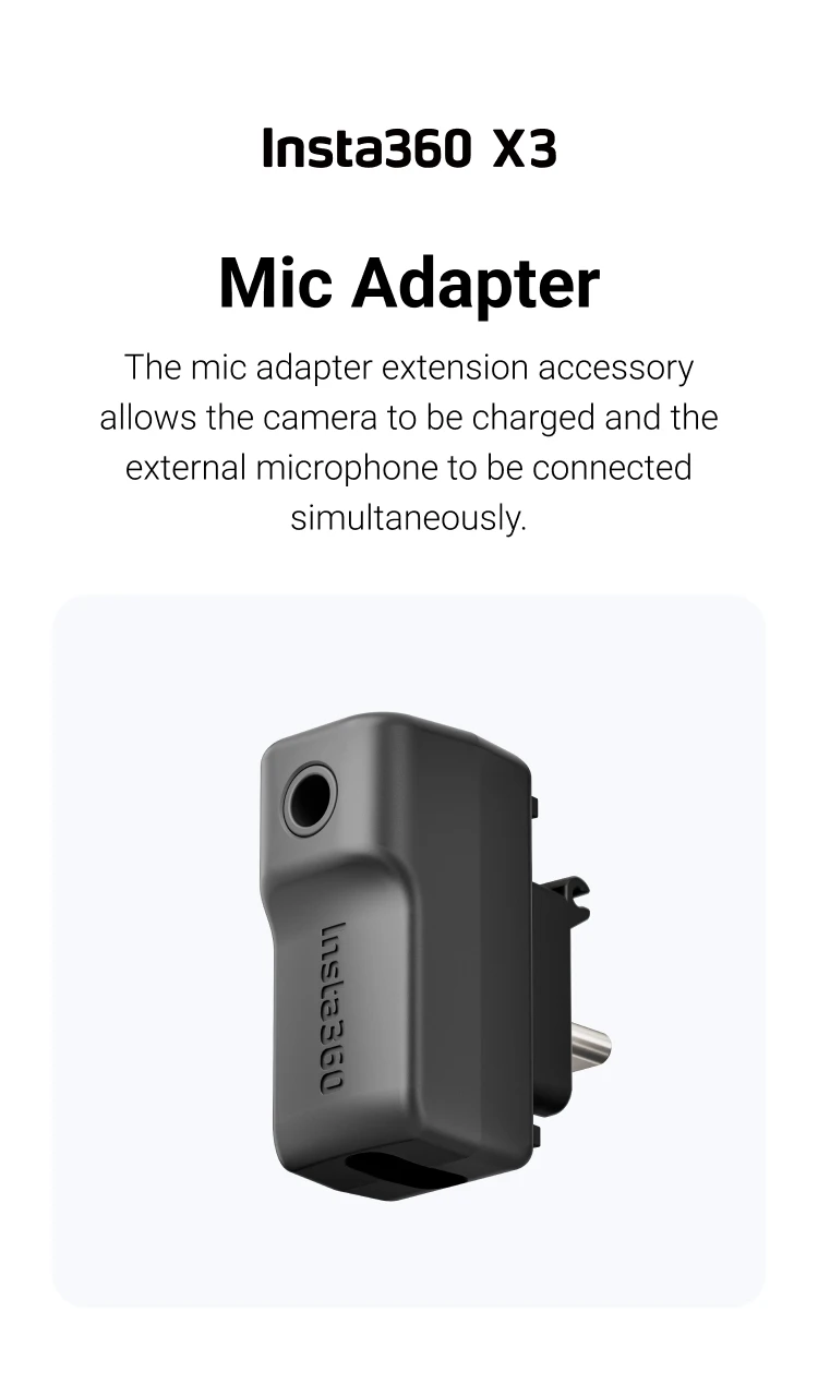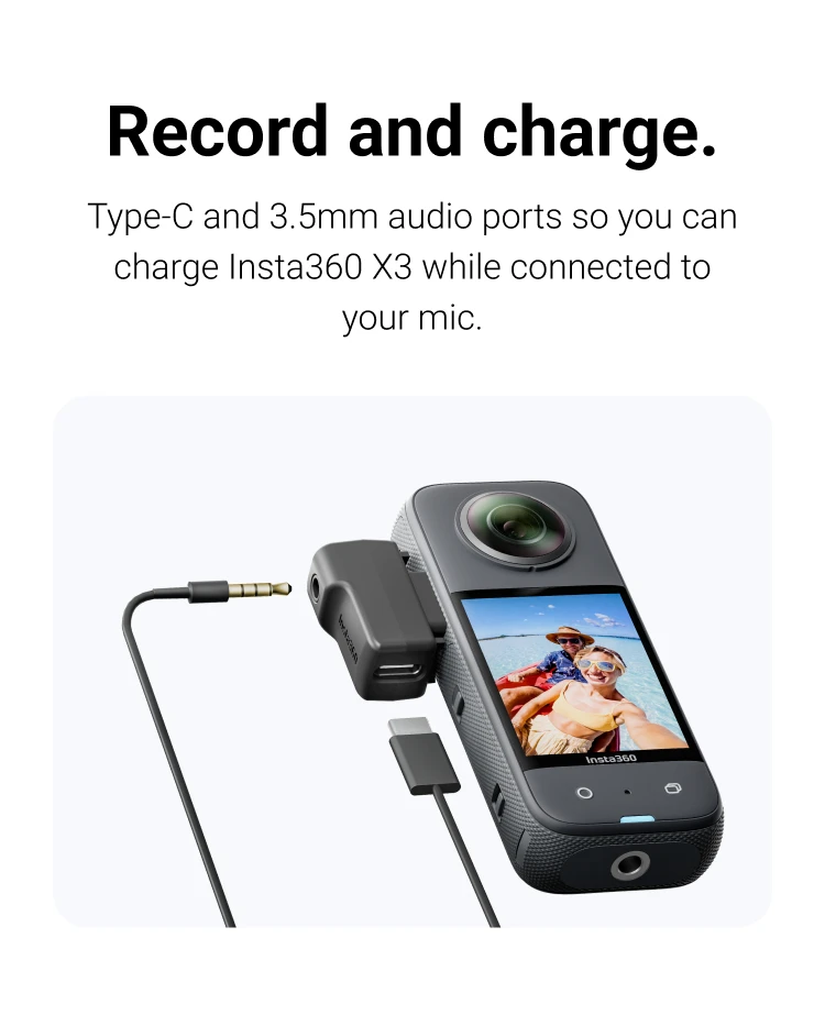 Type-C and 3.5mm audio ports so you can charge Insta360 X3 while connected to your mic.