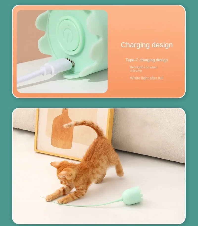 Intelligent Interactive Cat Toy USB Electric Rolling Ball Toy Cat Pet Silicone Rotating Imitation Mouse Tail Kitten Tease Stick