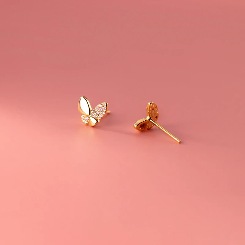 INZATT Real 925 Sterling Silver Tiny Zircon Butterfly Stud Earrings For Fashion Women Cute Fine Jewelry 18k Gold Accessories