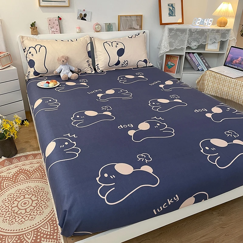 Kawaii Dog Printed Bed Set Floral Duvet Cover Pillowcase Bedding Set Cute Bed Sheet Quilt Cover Single Queen King Size 3/4 Piece