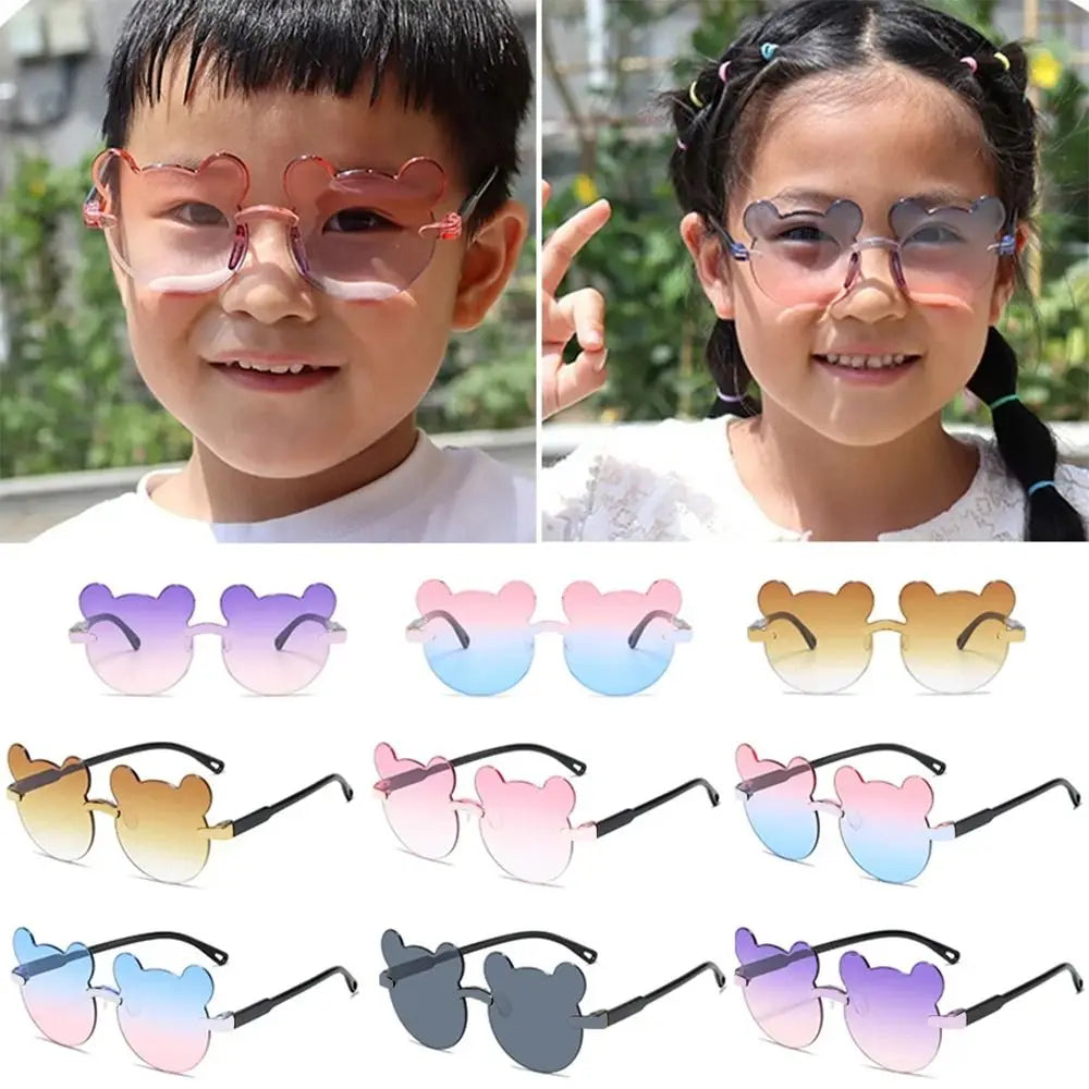 Kids Sun Sunglasses Bear Shape Children Glasses Cartoon Rimless UV400 Child Eyeglasses Outdoor Anti-Glare Girls Boys Sunglasses