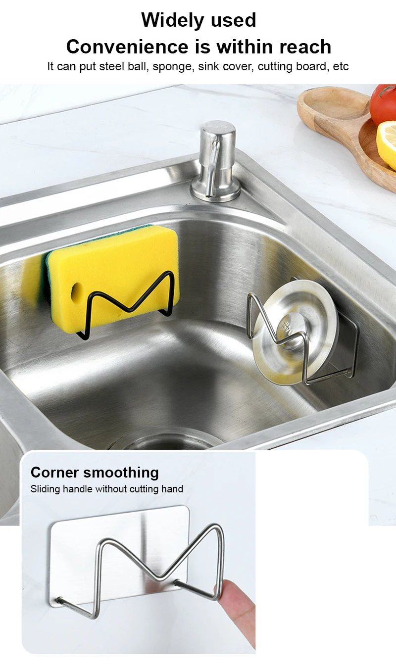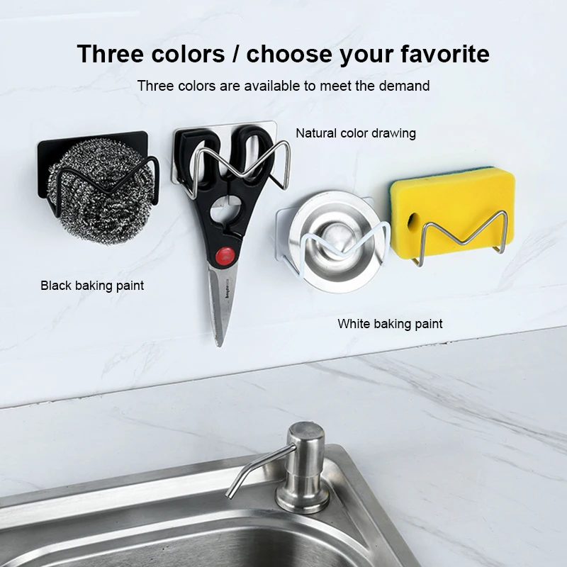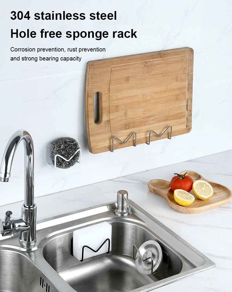 Kitchen Sink Sponges Rack Stainless Steel Drain Storage Shelf Self Adhesive Wire Ball Rag Holder Wall Brush Hooks Home Organizer