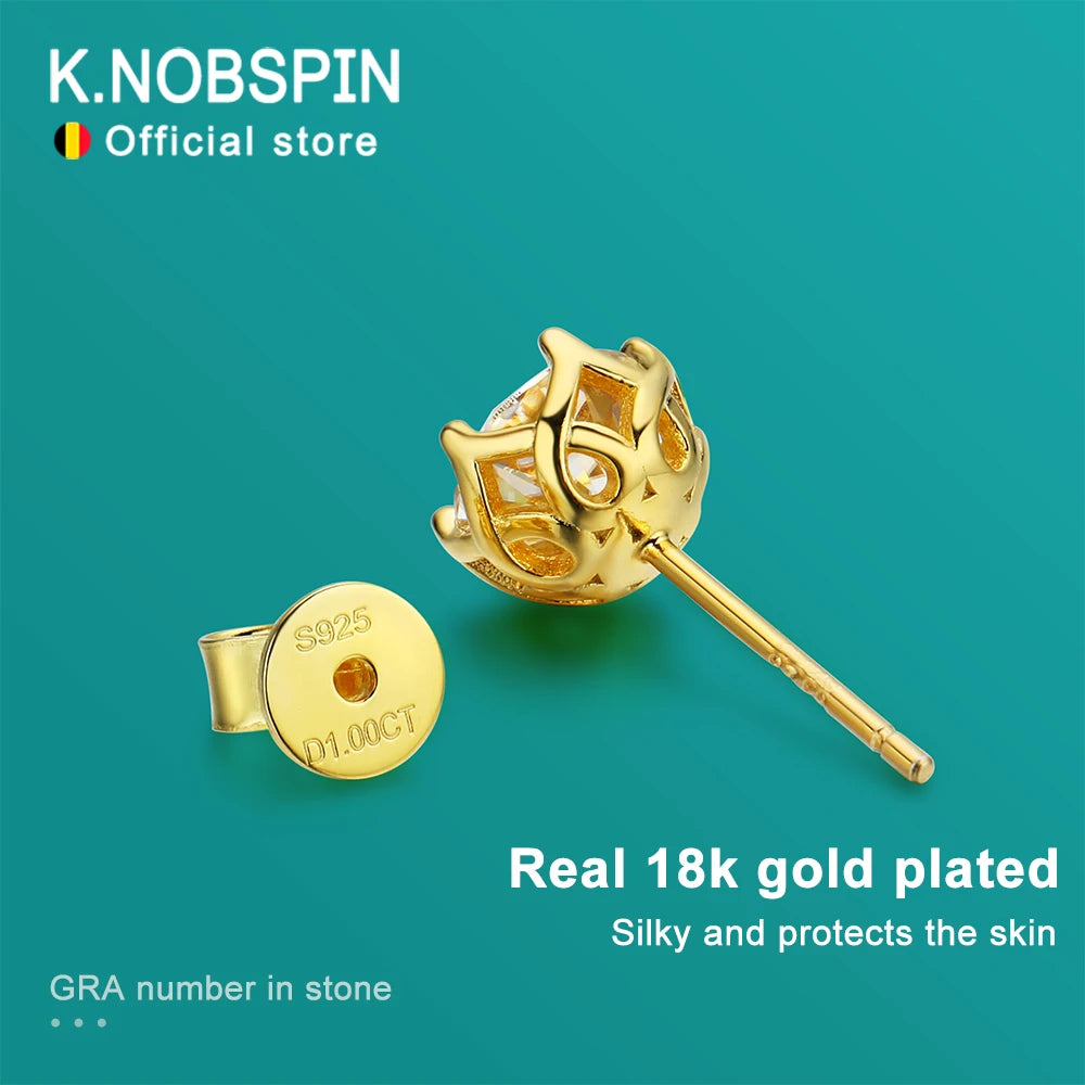 KNOBSPIN 1CT D Color Moissanite Earring S925 Sterling Sliver Plated with 18k White Gold Earrings for Women Wedding Fine Jewelry