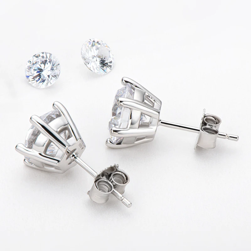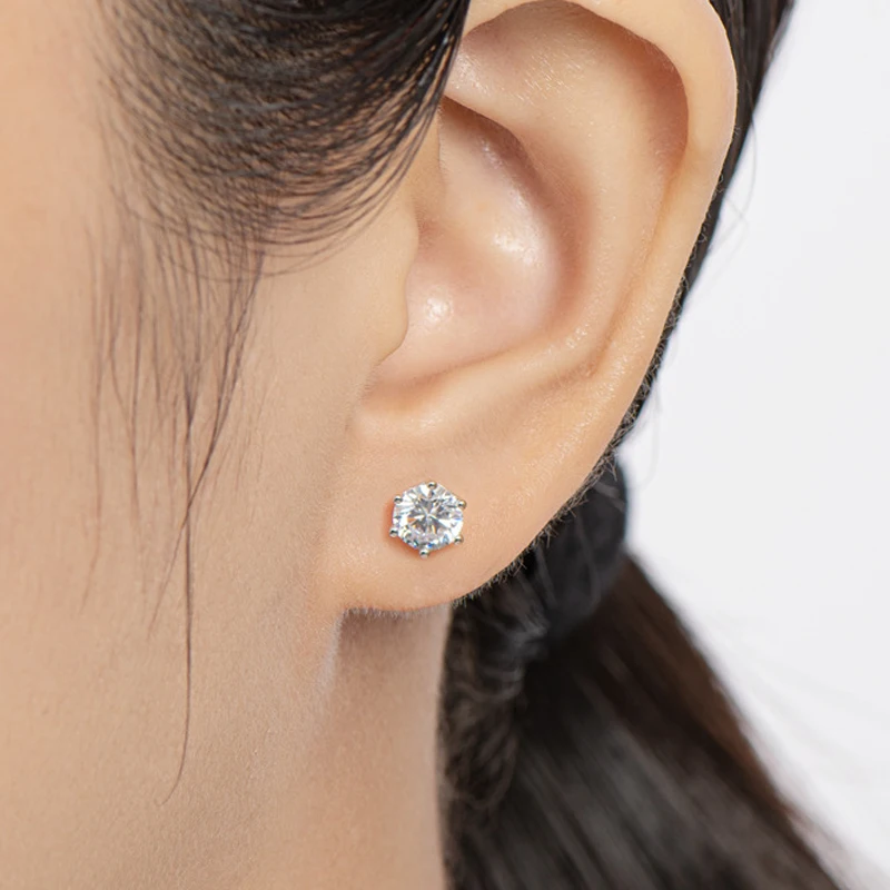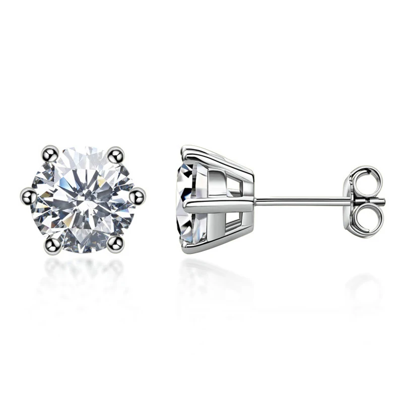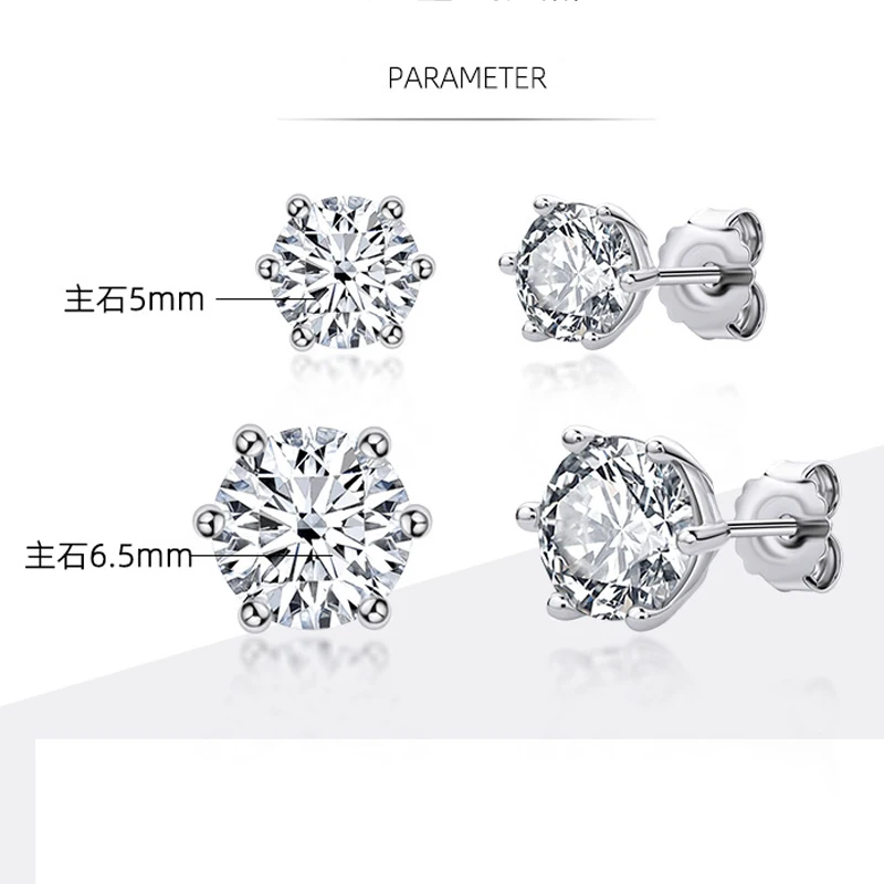 Knobspin Real 0.5ct/1ct/2ct D Color Moissanite 925 Sterling Silver Gold Plated Stud Earrings For Women Wedding Fine Jewelry Gift