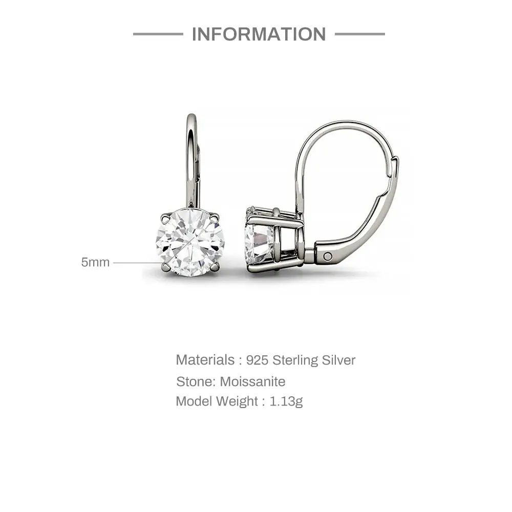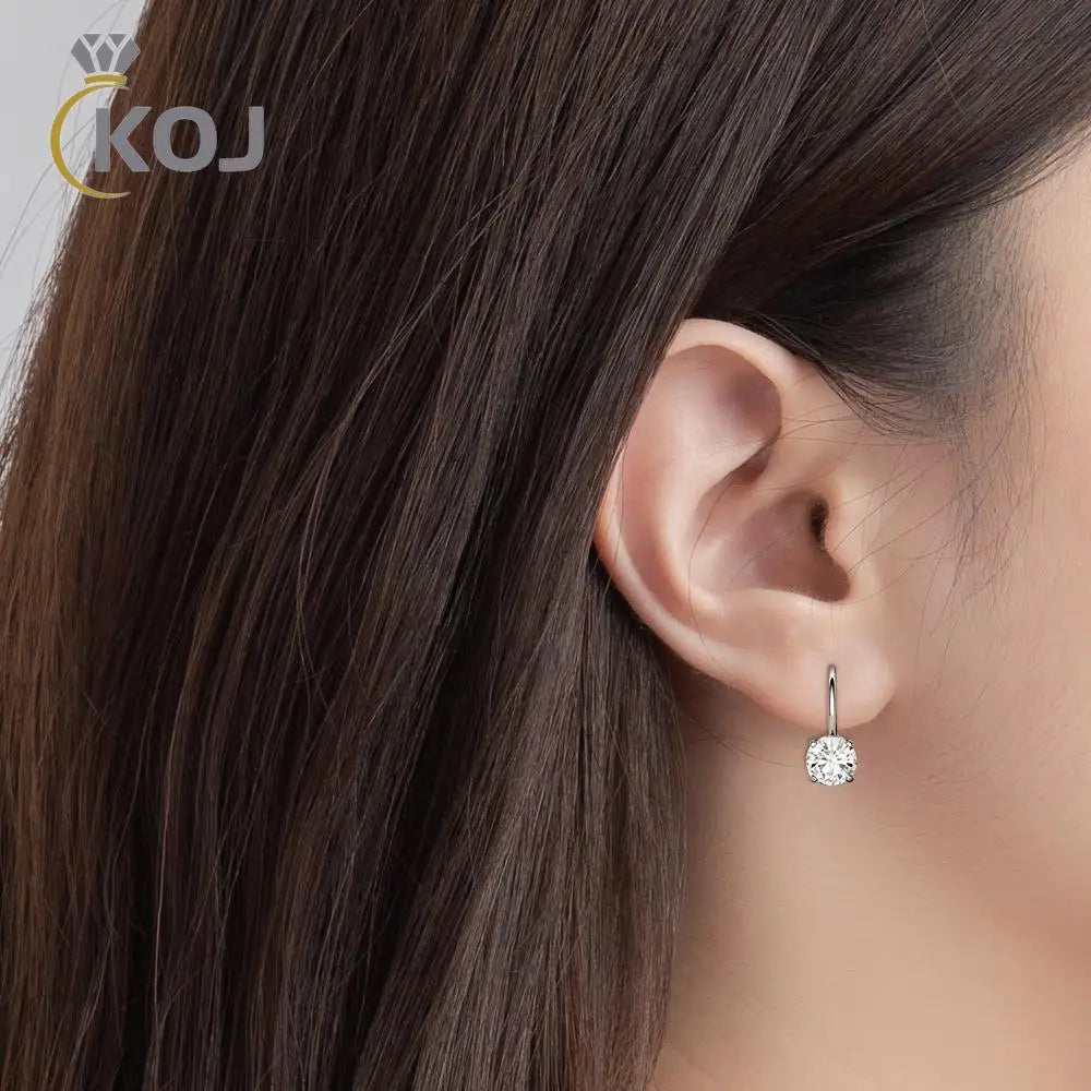 KOJ Women Four Prong Inlaid Moissanite Buckle Earrings 925 Silver Anniversary Accessory Earring Fashion Jewelry with Certificate