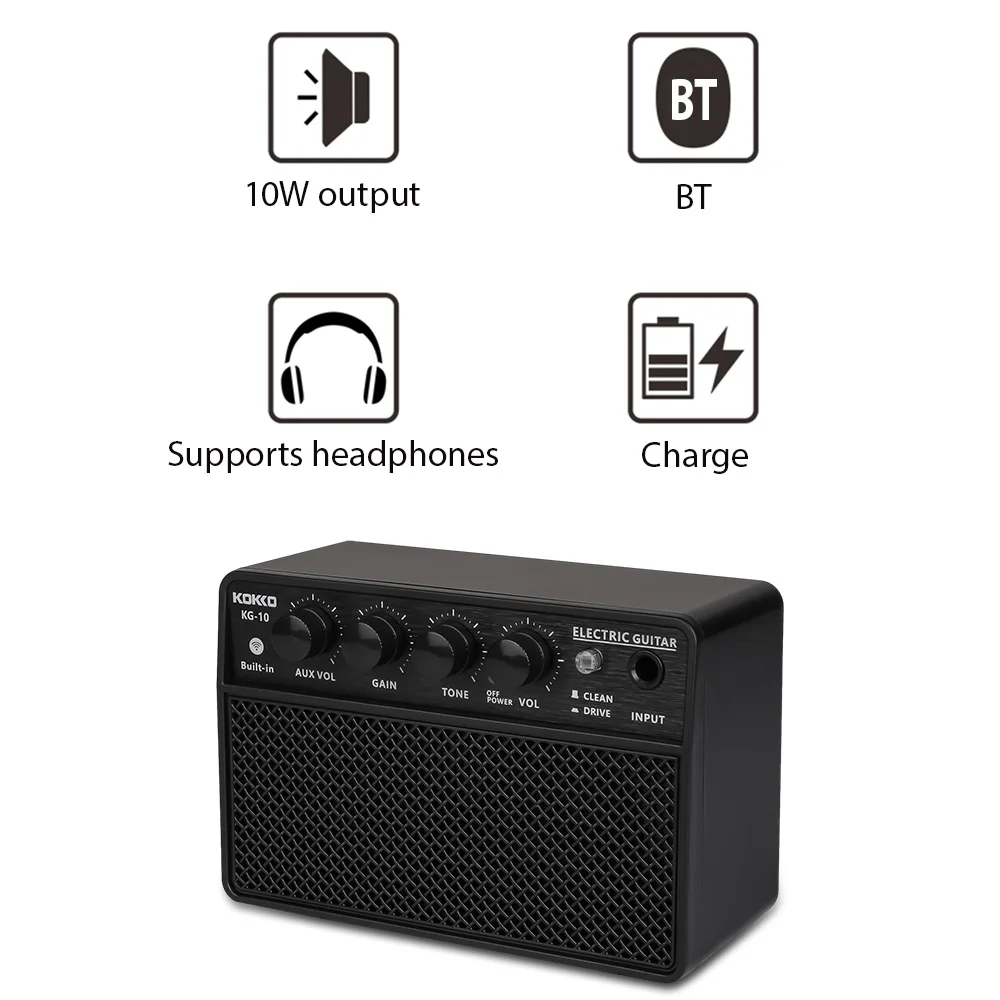 KOKKO 10W Small Electric Guitar Amp Mini Portable Guitar Practice Speaker Rechargeable Portable Practice Audio Guitar Amplifier