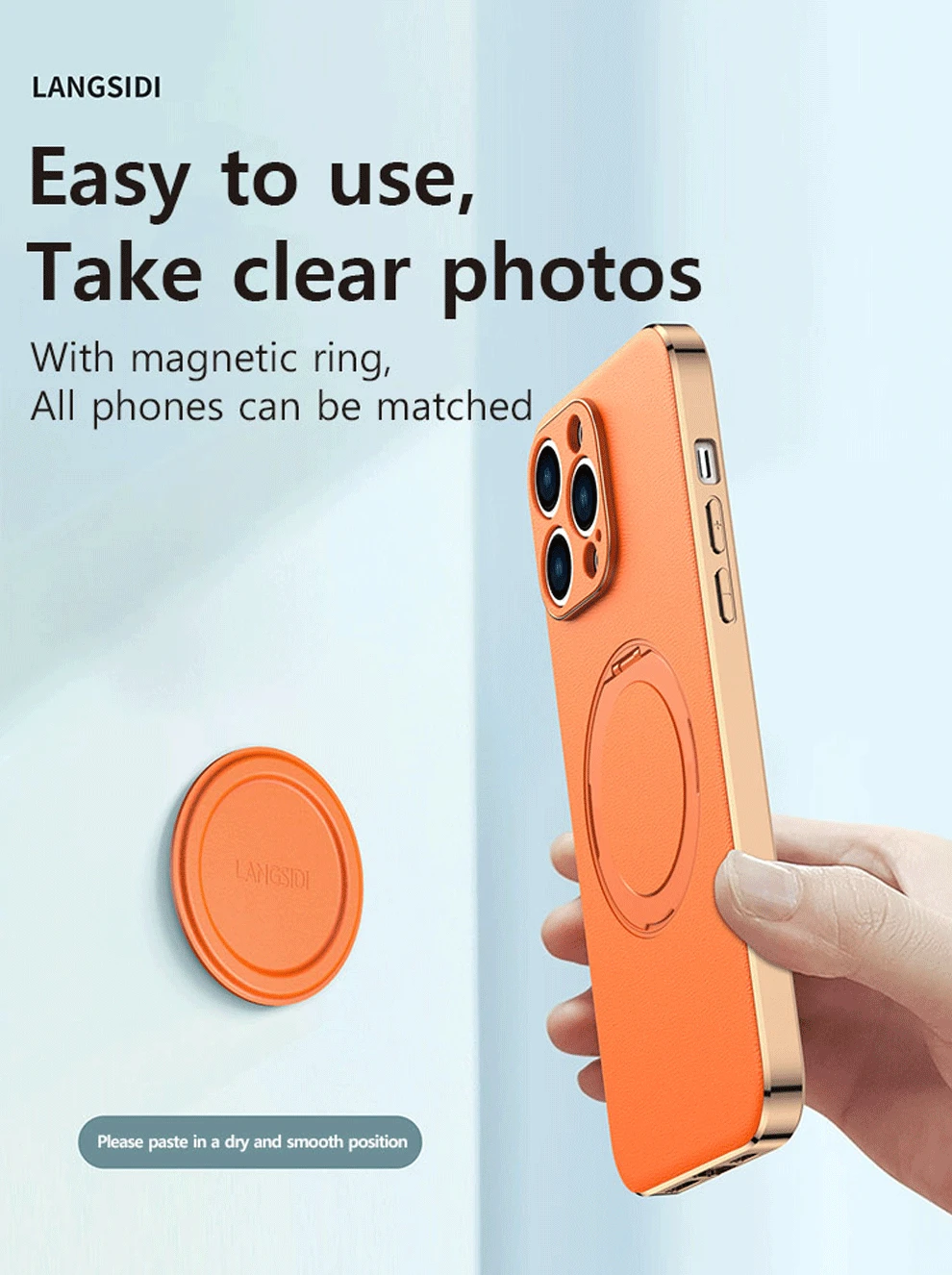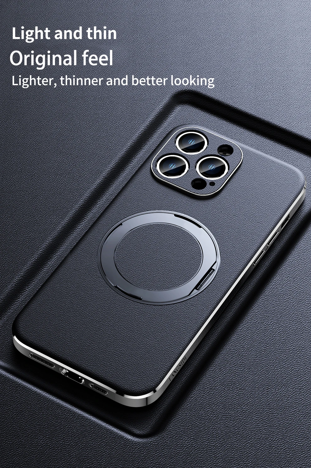 LANGSIDI leather Magnetic Ring Holder phone case For iPhone 15 13 12 14 Pro Max Wireless Charging lens Protective magsafe cases