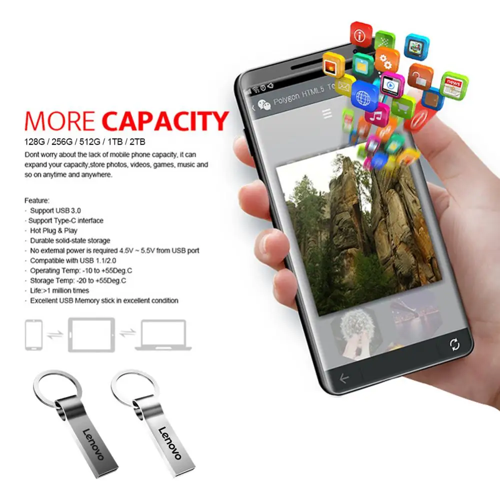Lenovo 2TB Flash Drives USB 3.1 High Speed Metal Mini Pendrive 1TB Memory Stick Portable Drive Waterproof Memoria Storage U Disk