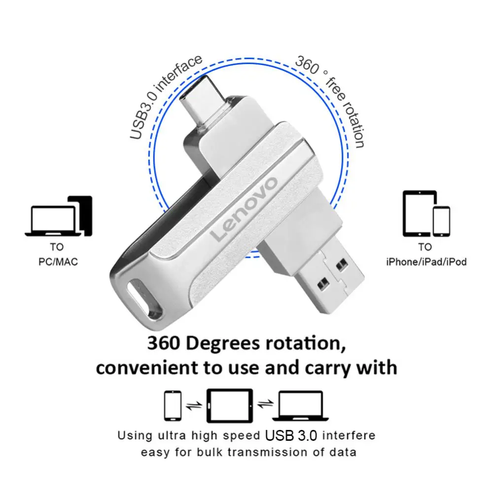 Lenovo 2TB Metal USB Memory Flash Drive 3.0 1TB 128GB High Speed USB Memories 128GB Waterproof OTG Pen Drive Ideas Gift