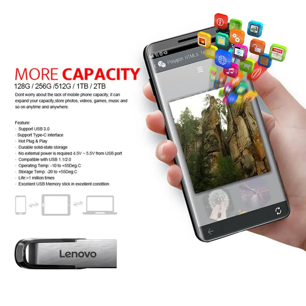 Lenovo Original 2TB Pen Drive USB Memory USB Flash Drives 2TB 128GB 512GB TYPE C High Speed Usb 3.0 Waterproof Pendrive U Disk