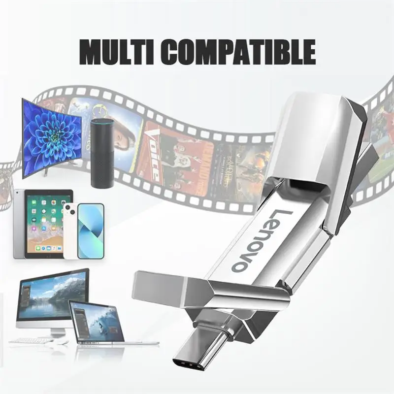 Lenovo USB 3.1 2TB Flash Drive 2 IN 1 OTG 1TB 512GB High Speed Metal U Disk Memory Type C Mobile storage Waterproof USB Stick