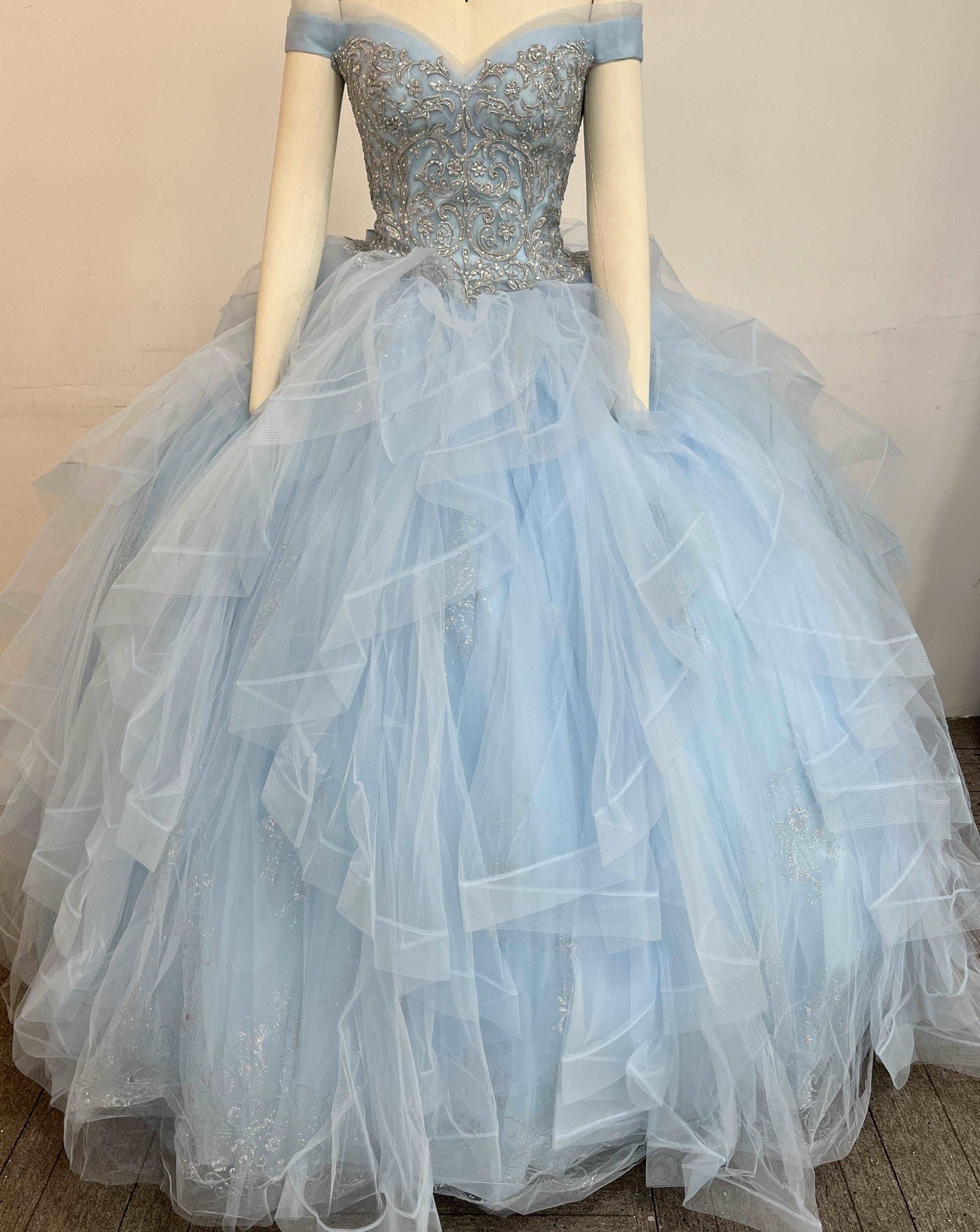 Get ready to turn heads and make a statement with our Sequined Patterned Glitter Net Quincea??era Dress. This stunning gown features a unique sequin pattern that adds a touch of sparkle and glamour to your look. The glitter net material gives the dress a silky and luxurious feel, making you feel like a true princess.
