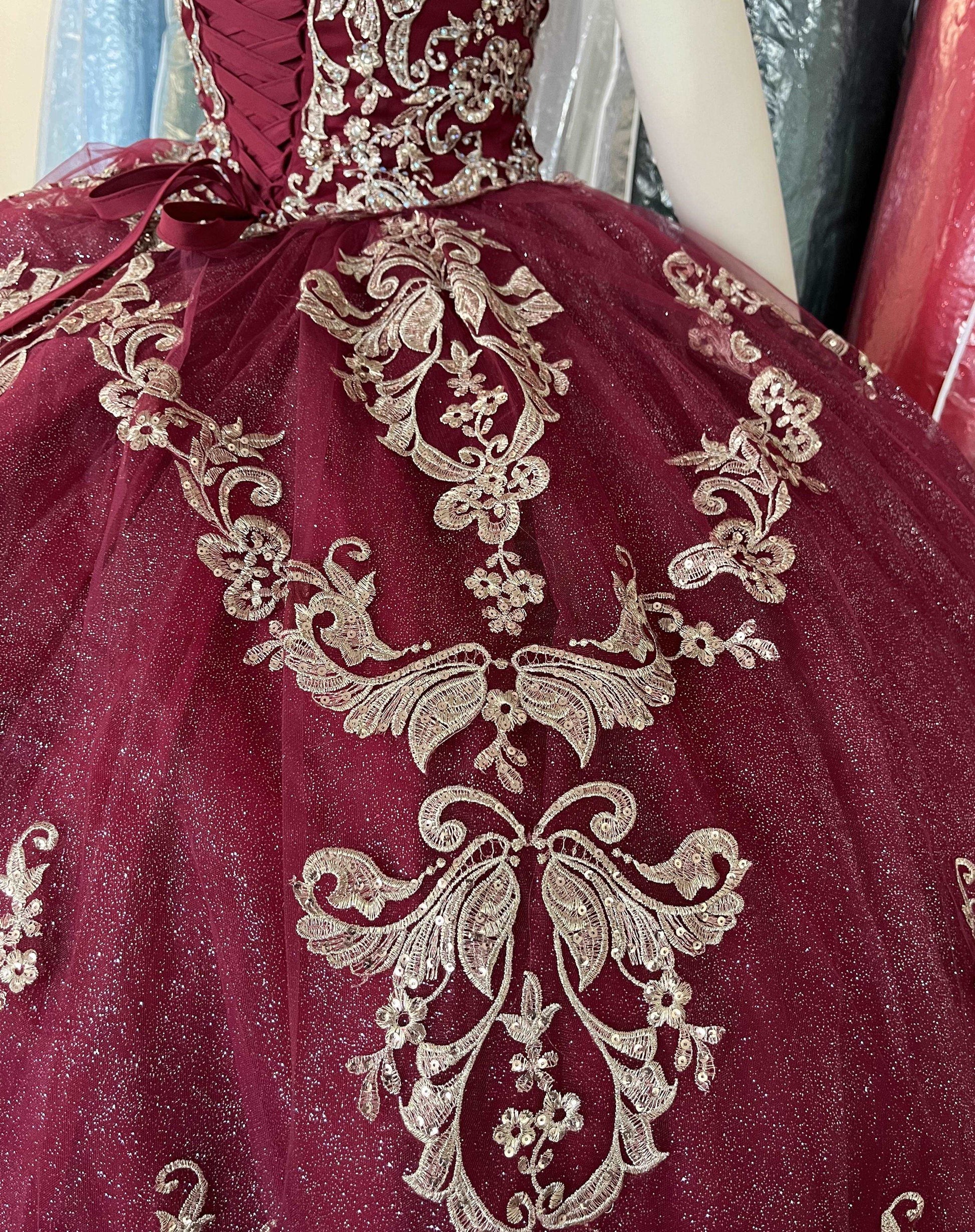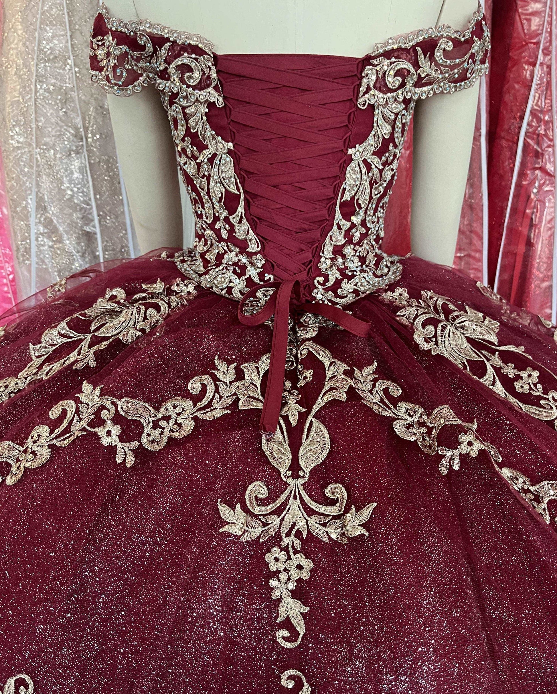 Metallic Embroidered Diamant?? Beaded Quincea??era Dress