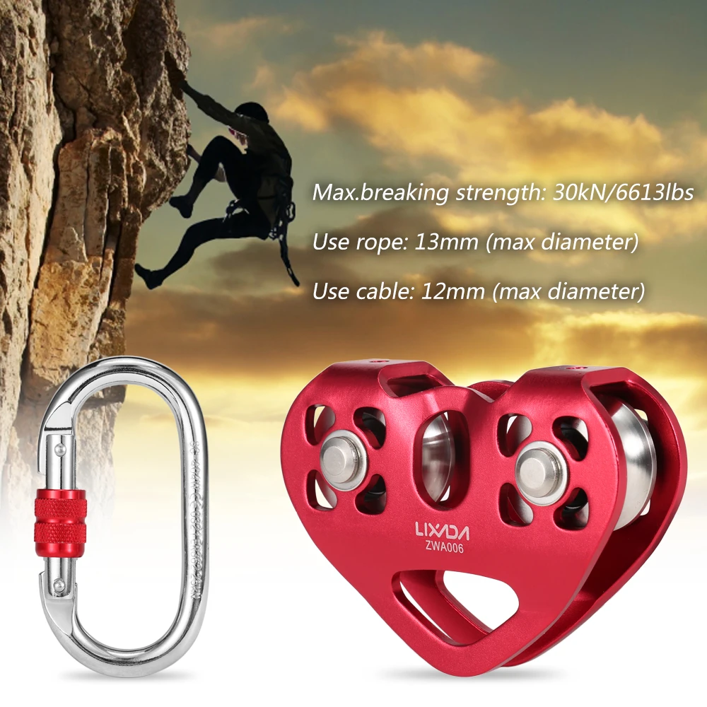 Lixada 30kN Dual Pulley with 25kN Carainber set is professional equipment for climbing,rescue,aloft work,engineering and caving etc.