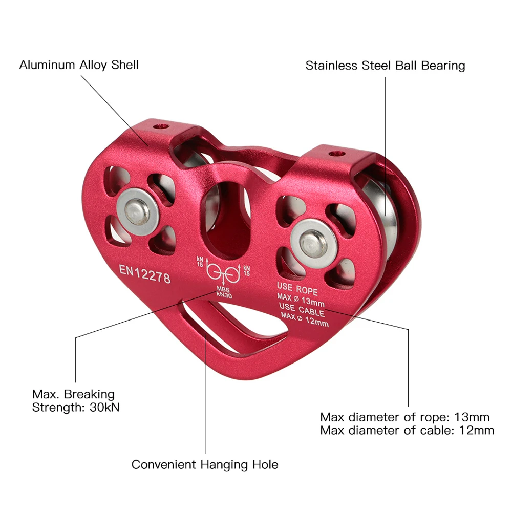 30kN dual pulley and 25kN screw locking carabiner for high durability.