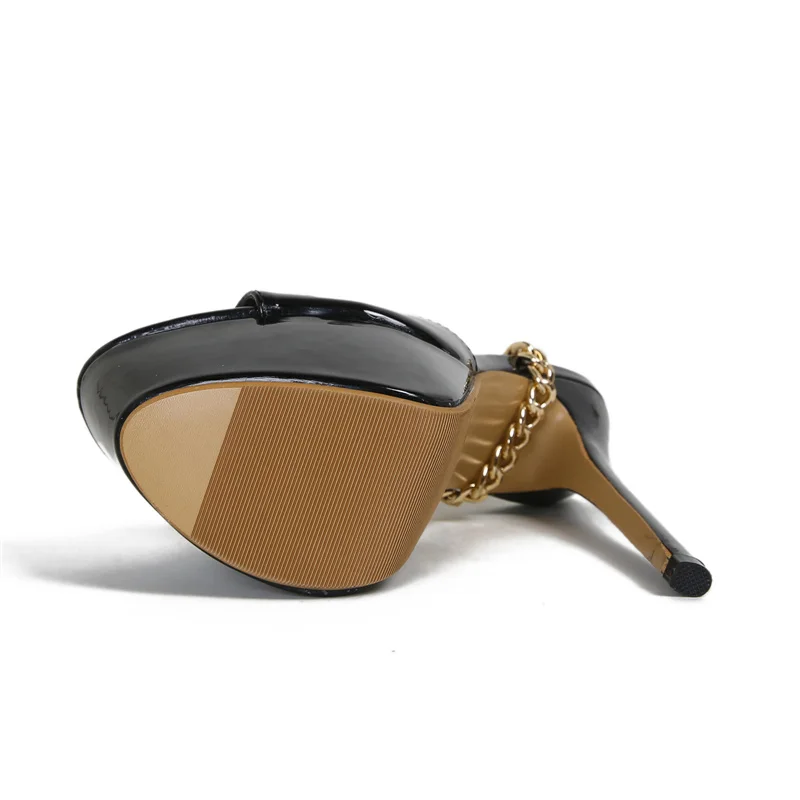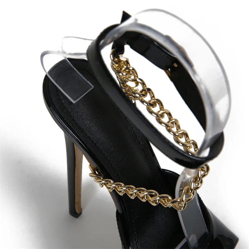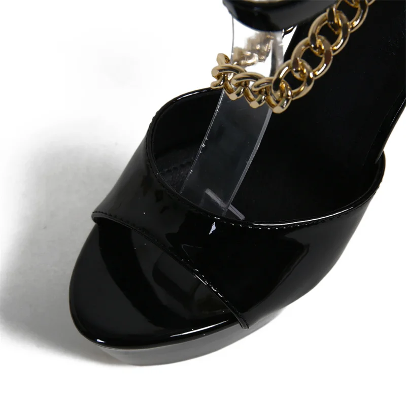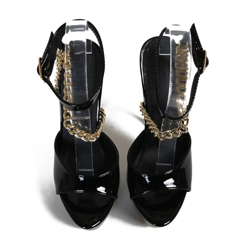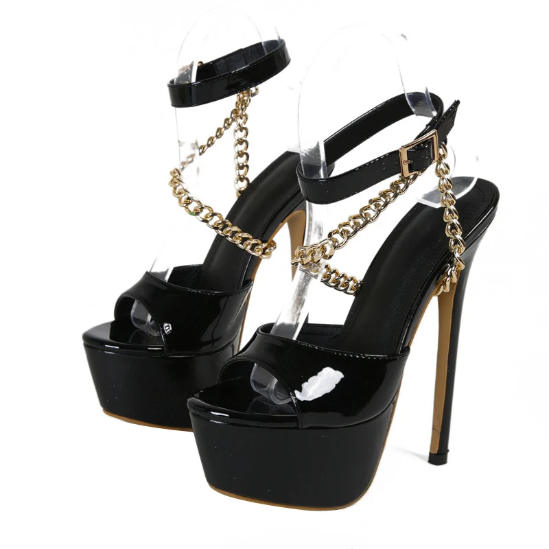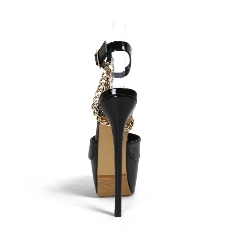 Liyke Summer 16 CM Super High Heels Platform Sandals Women Fashion Open Toe Chain Ankle Strap Ladies Party Stripper Shoes Black