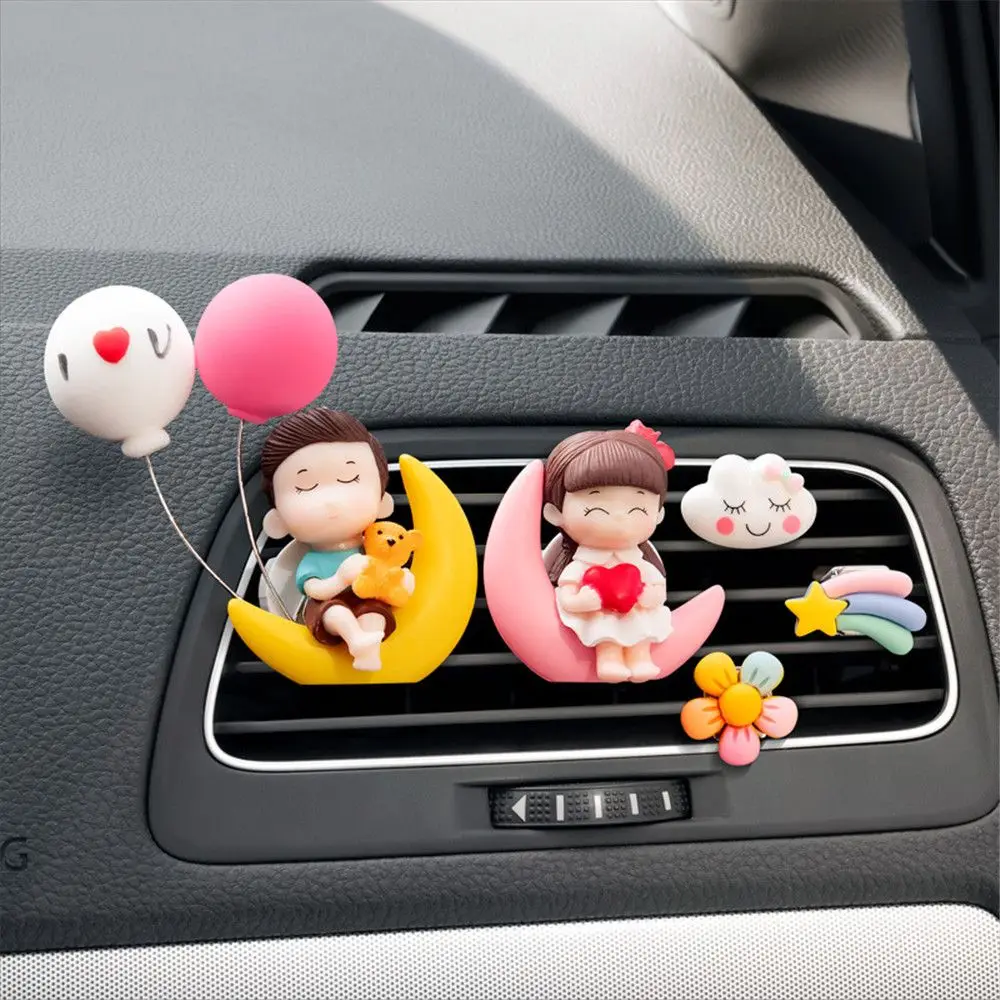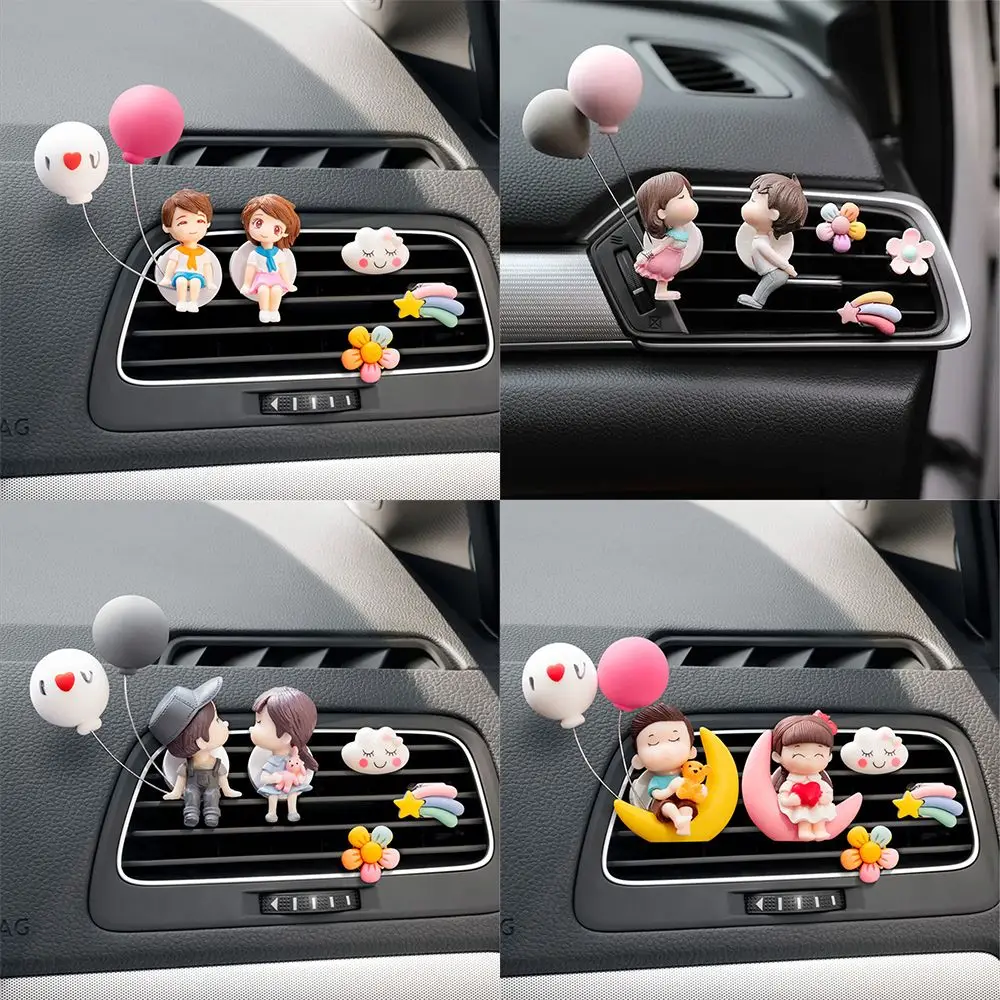 Lovely Couple Girl Boy Car Air Vent Freshener Essential Oil Perfume Clip Scented Aromas Diffuser Decor Auto Interior Accessories