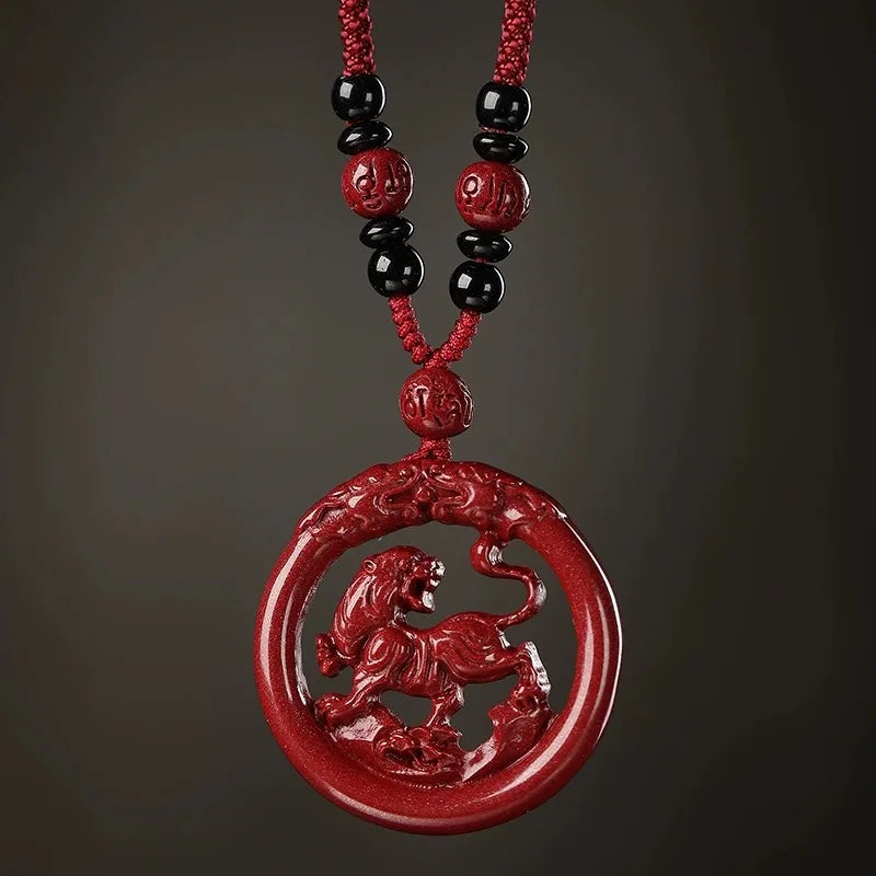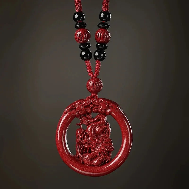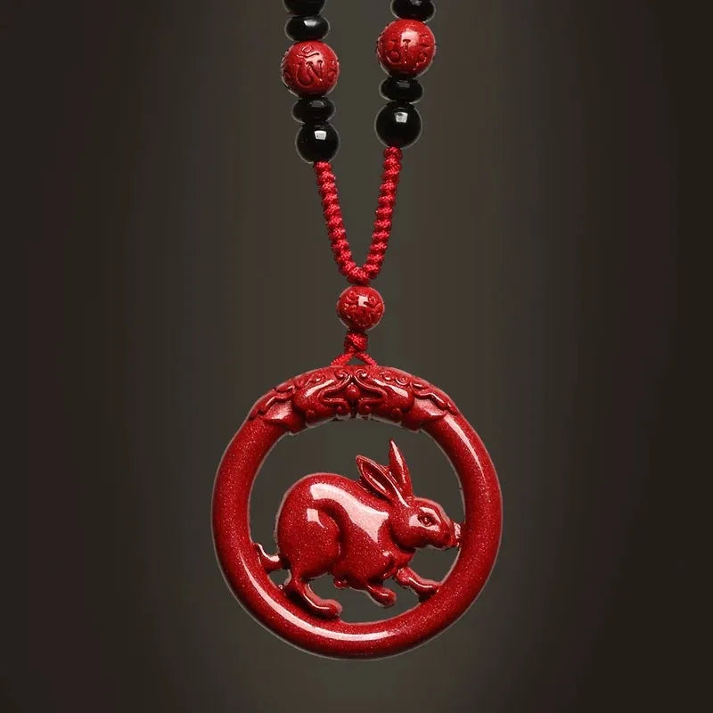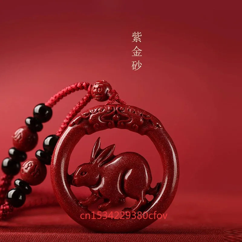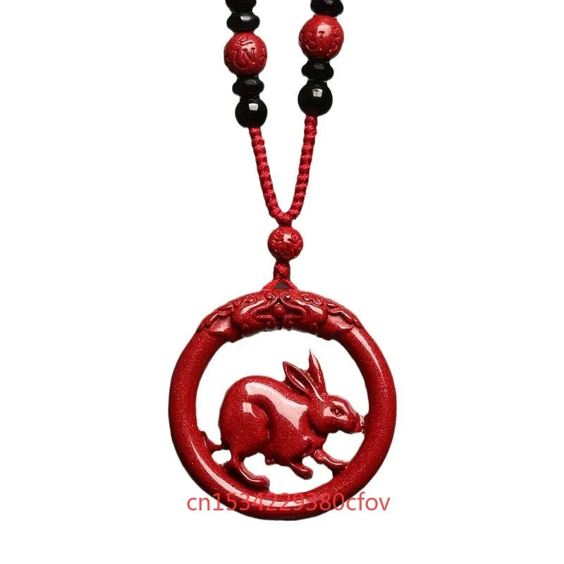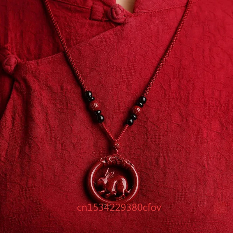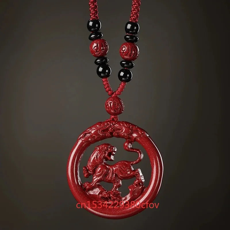 Luxury Red Cinnabar Chinese Zodiac Hollow Double-sided Pendant Necklace Real Natural Jewelry Women Accessories Energy Gifts