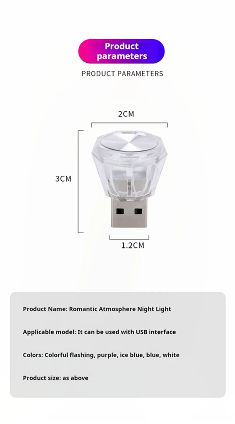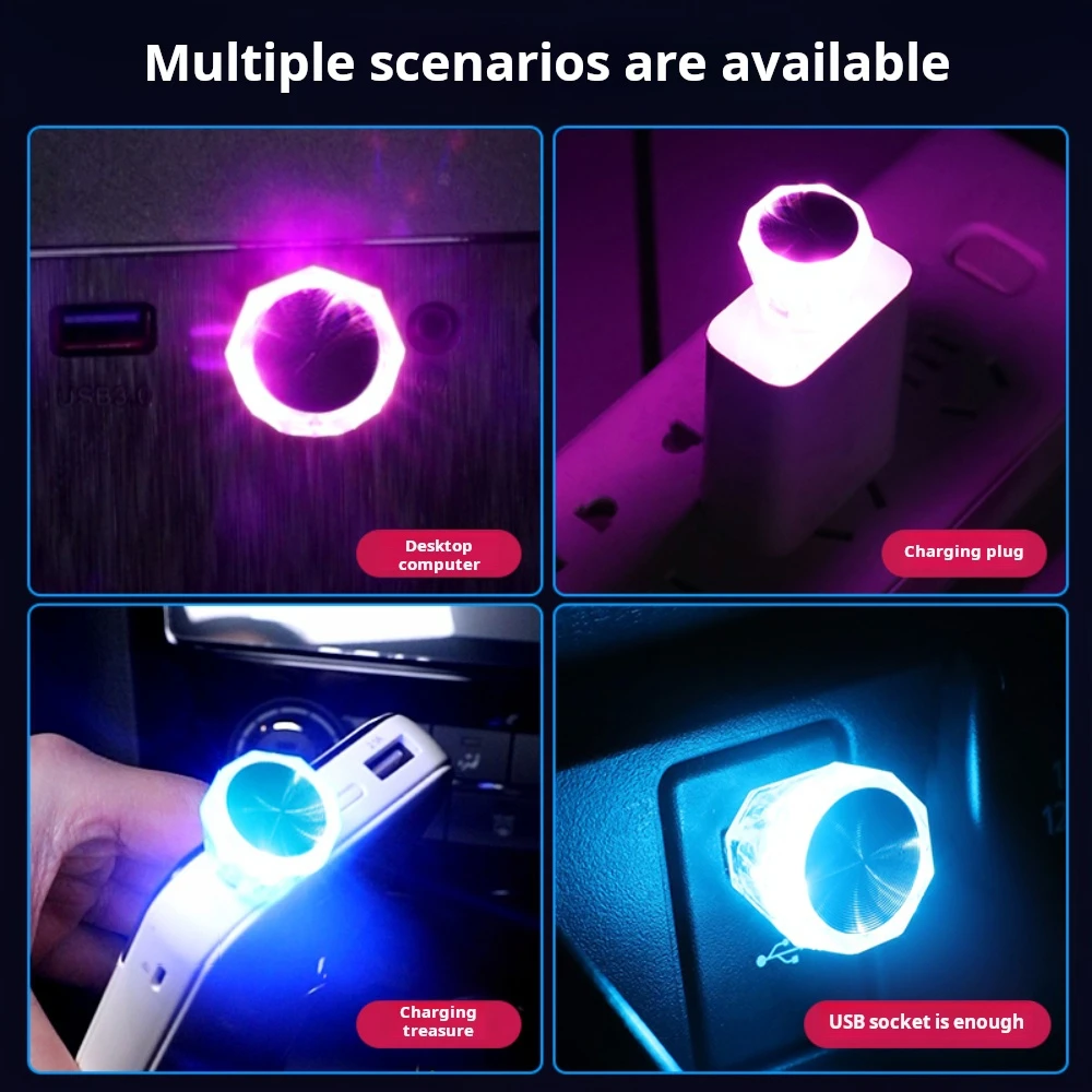 Mini Compact USB Ambient Lamps LED Car Light Auto Interior Atmosphere Light Decoration Gradieng USB LED Night Light for Car Home