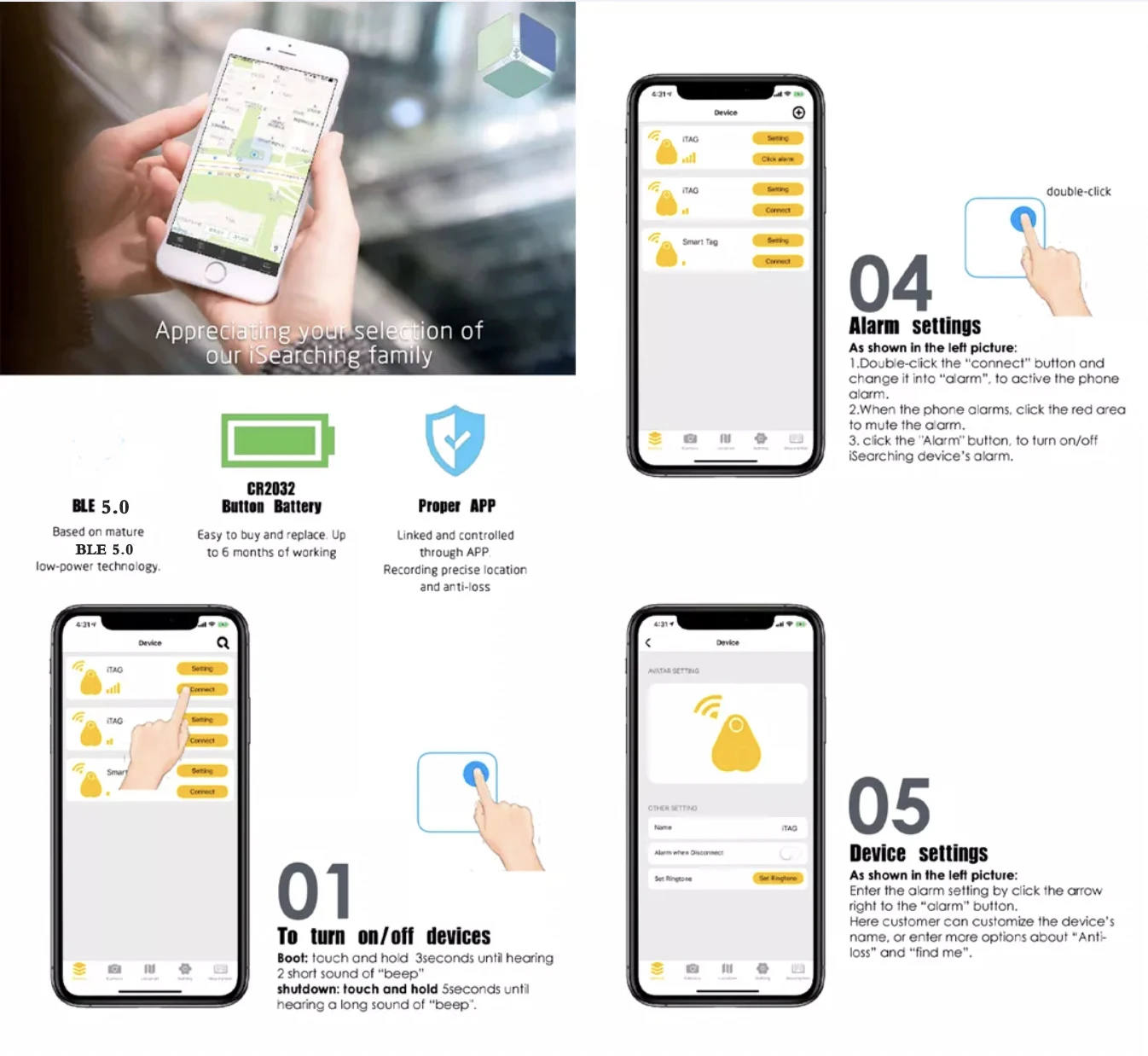 Name: Mini GPS Tracker Anti-Lost Device Blue-tooth Locator Pets Kids Alarm Wallet Tracking Key Finder for IOS/ Android Tag