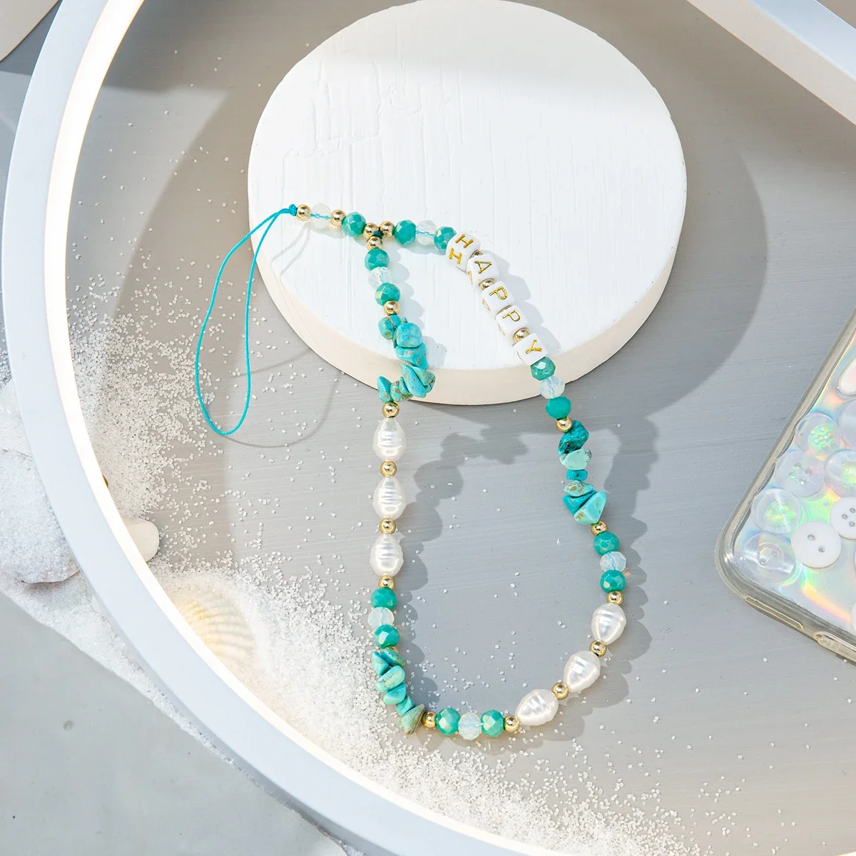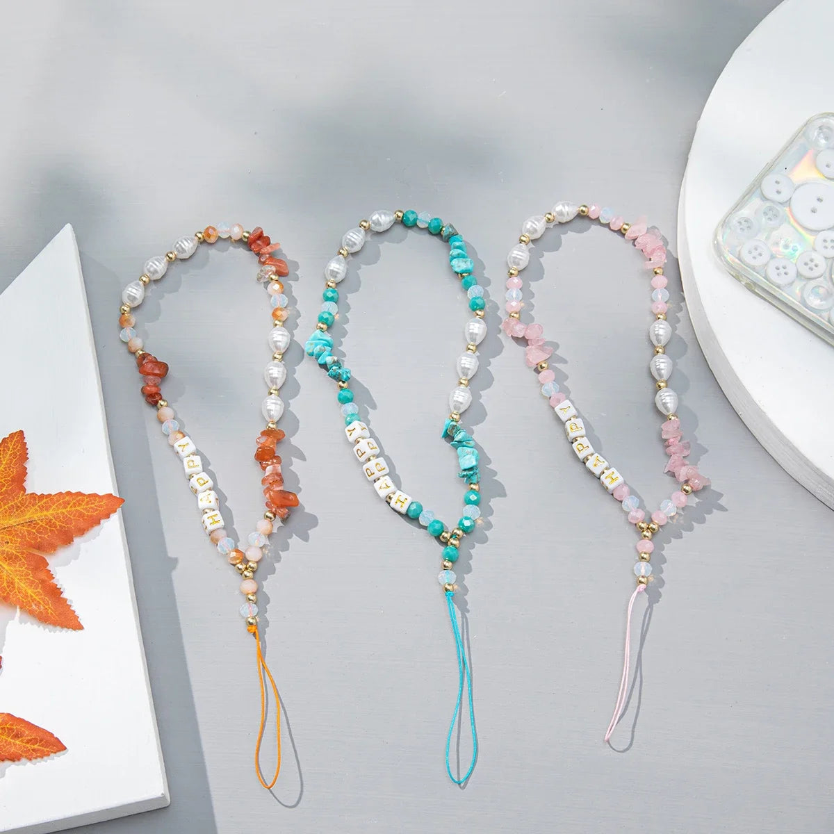 Mobile Phone Chain Women Stone Pearl Jewelry Cell Phone Strap Lanyard Beads Necklace