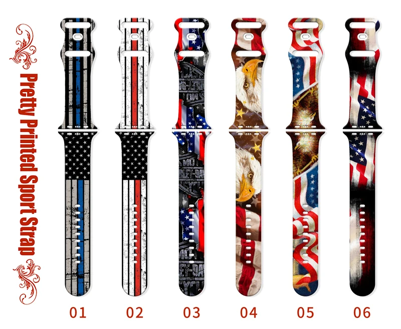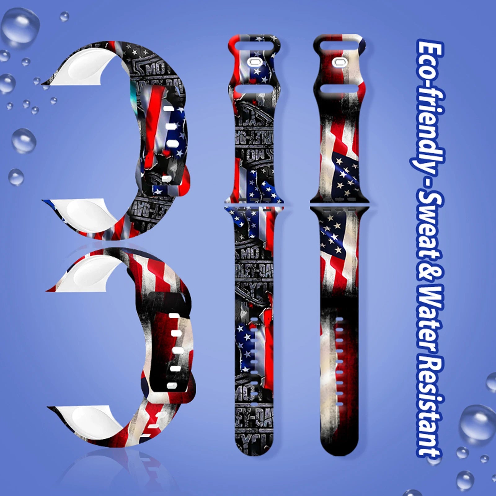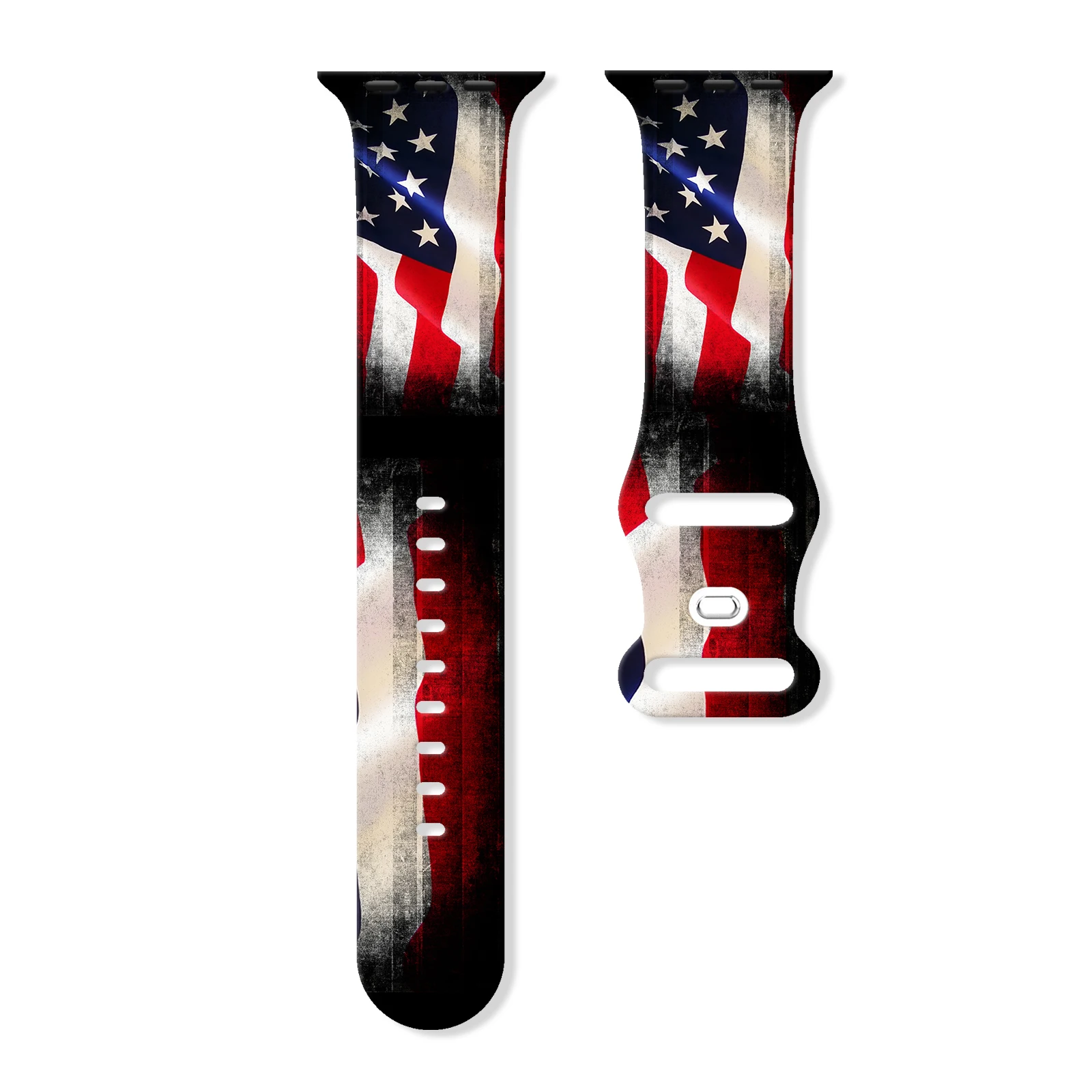 National Flag Printed Strap for Apple Watch 9 8 7 SE Silicone Band Replaceable Bracelet for iWatch 45mm 44mm 42mm 41mm Watchband
