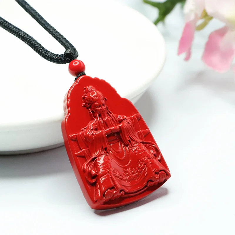 Natural Authentic Cinnabar God of Wealth Pendant Red Sand Wutai Mountain Dragon 5 Pendant Men's and women's fine jewelry