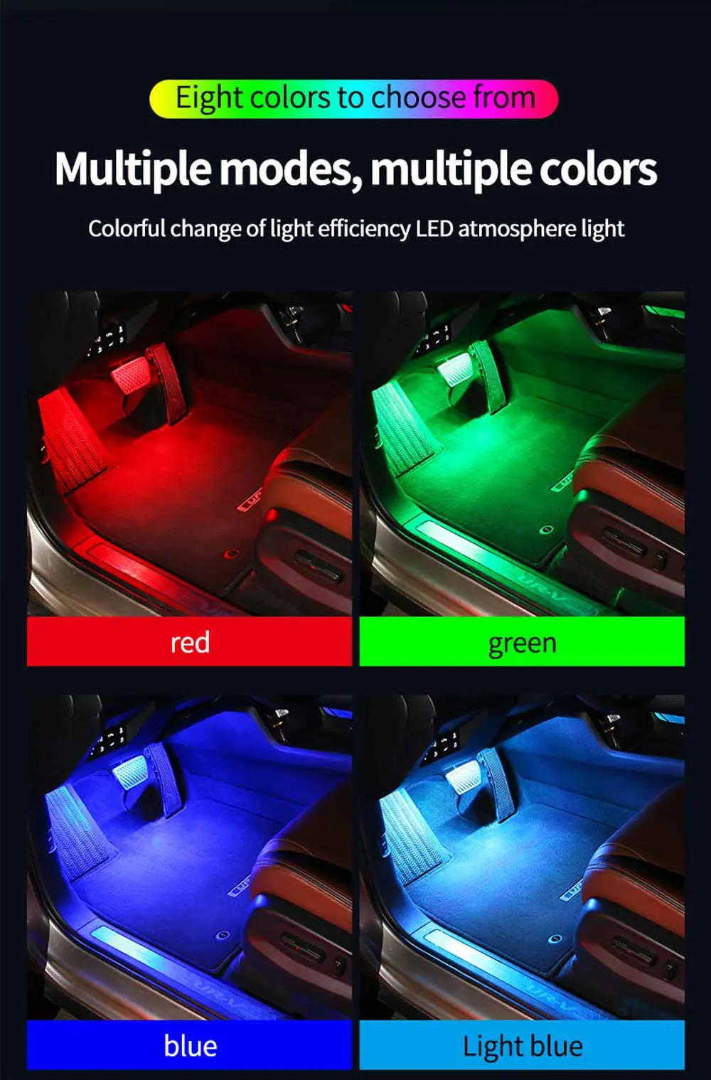 1. Wireless music control 8-color RGB internal lighting kit.