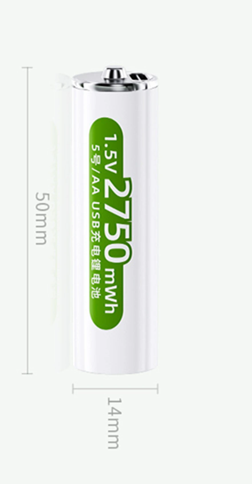 New 1.5V AA rechargeable battery 2750mWh USB rechargeable lithium battery with Type-C cable for fast charging