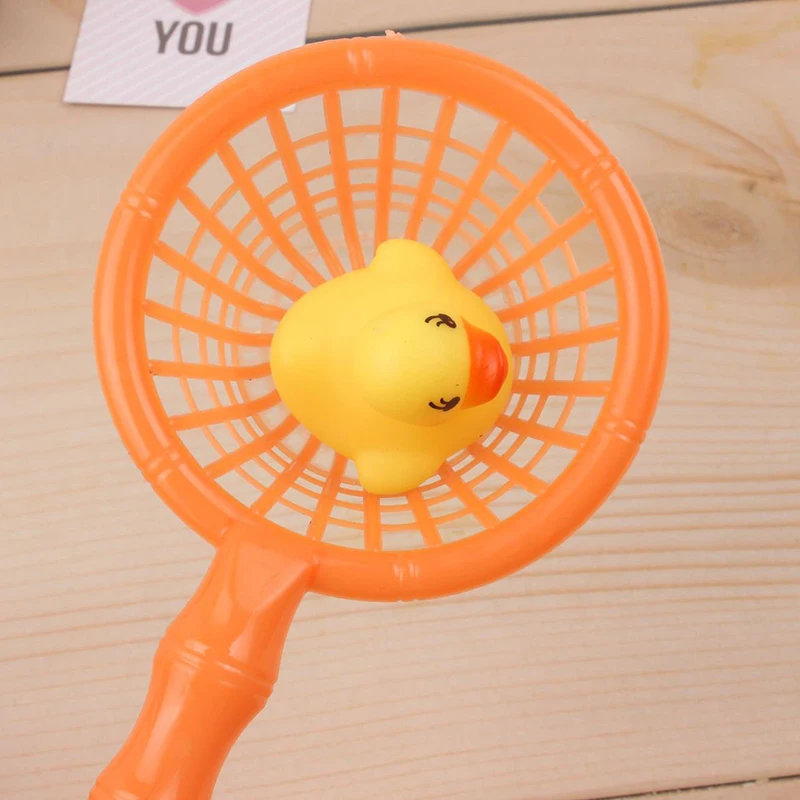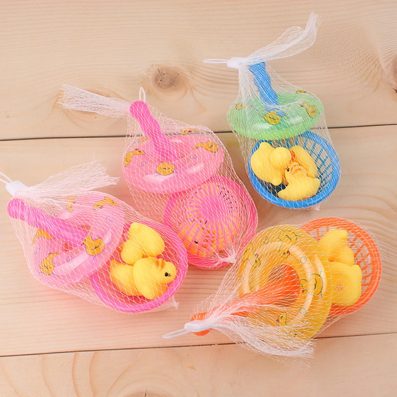 New 5Pcs/Set Kids Floating Bath Toys Mini Swimming Rings Rubber Yellow Ducks Fishing Net Washing Swimming Toddler Toys Water Fun
