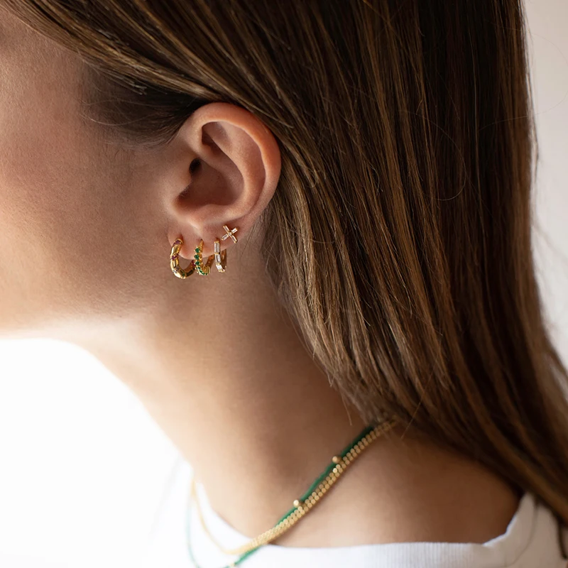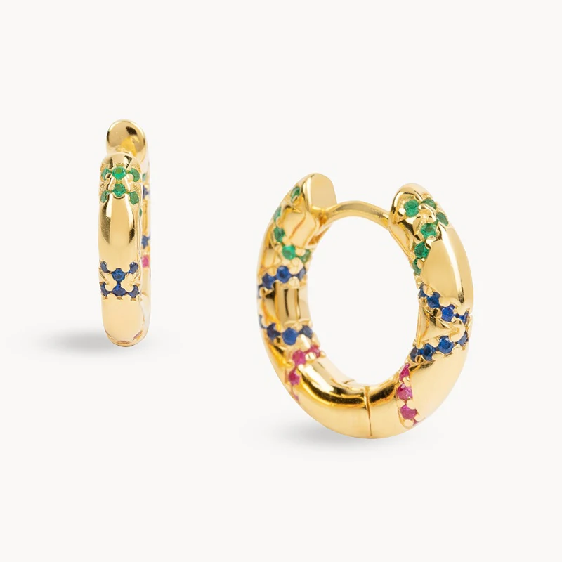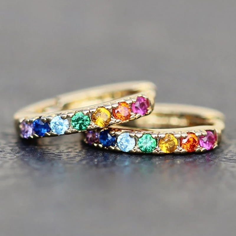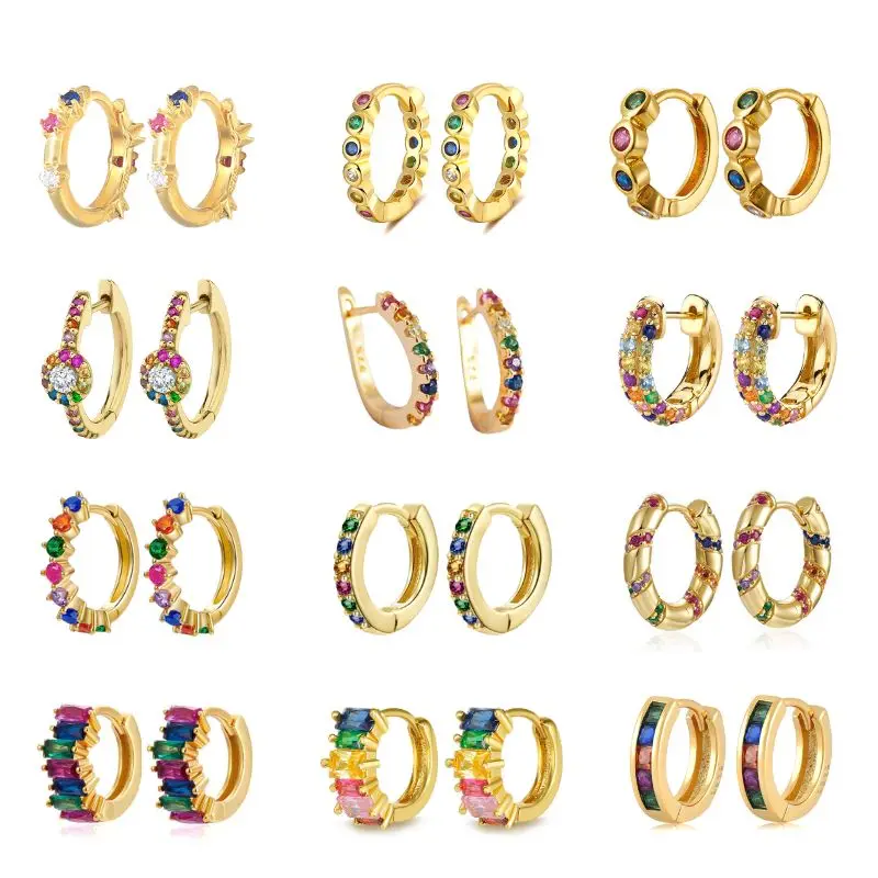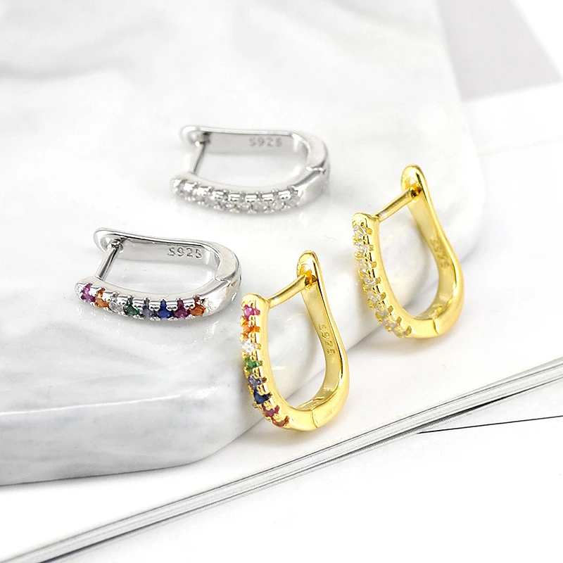 New 925 Sterling Silver Ear Needle Colorful Zircon Retro Hoop Earrings for women Granular Crystal Earrings Fashion Party Jewelry