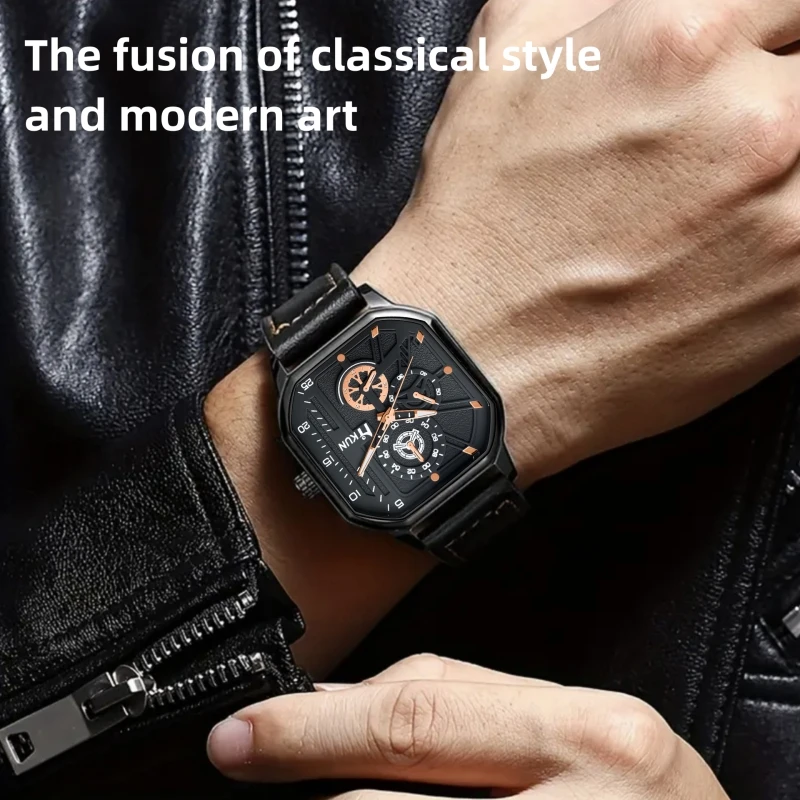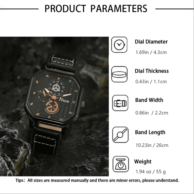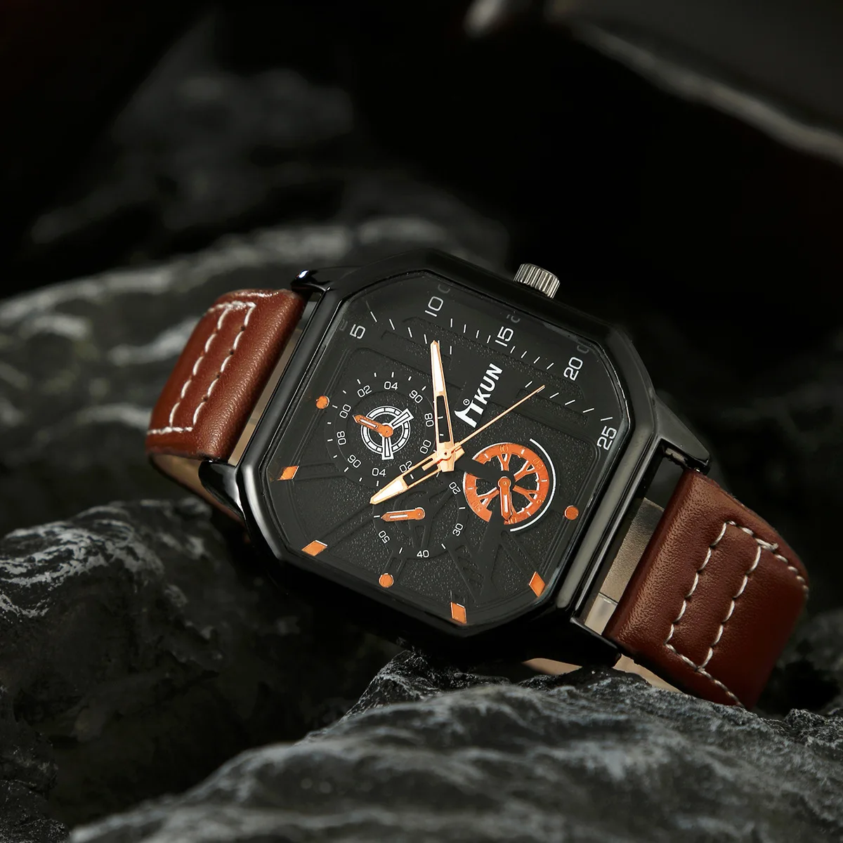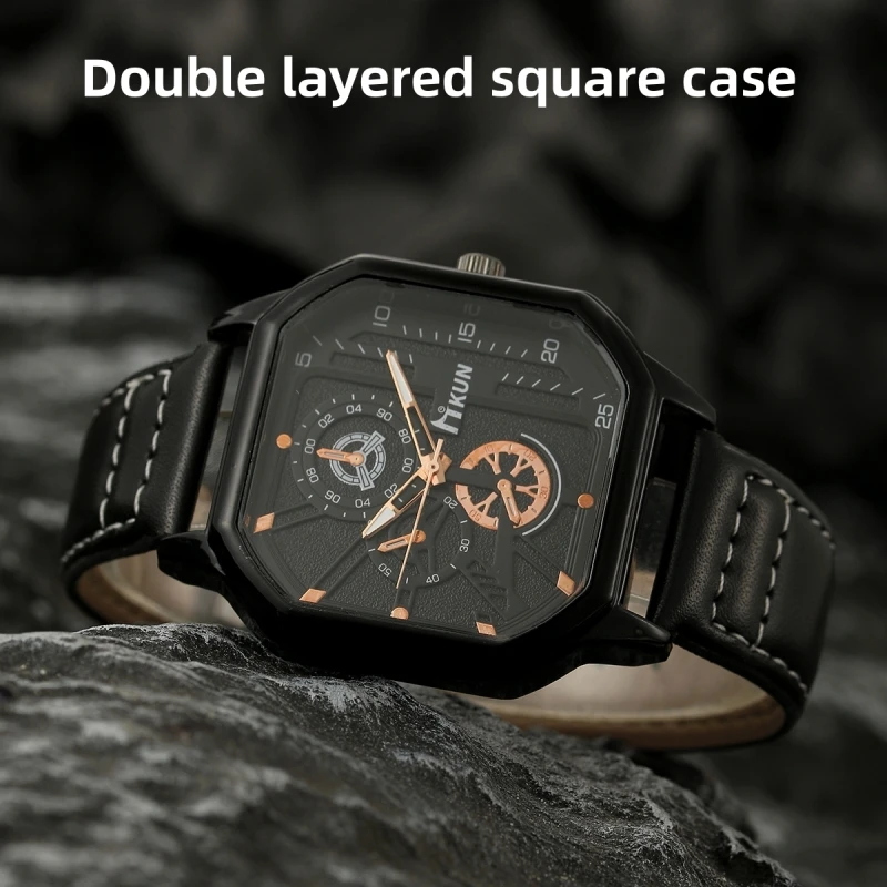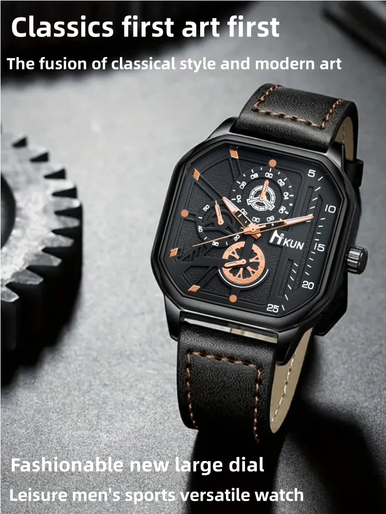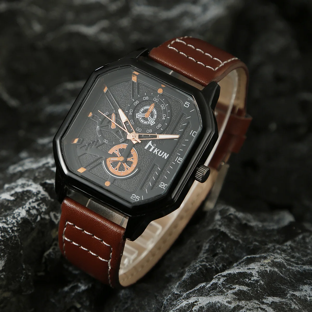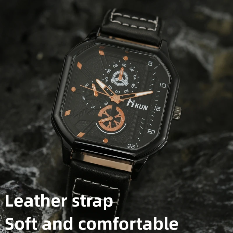 NEW Alloy Men Quartz Watches Leather Strap Big Dial Student Square Sports Watch Cool Black Men's Watch Waterproof Wristwatch