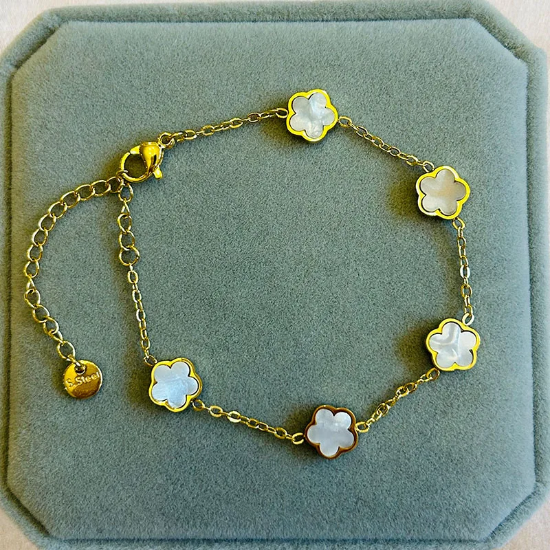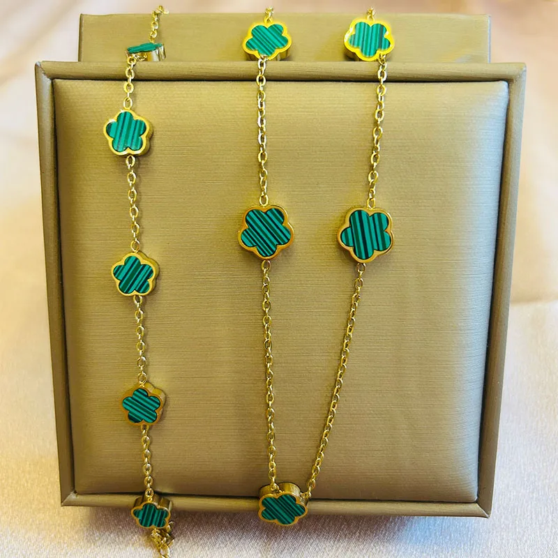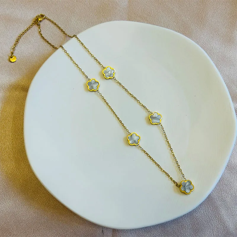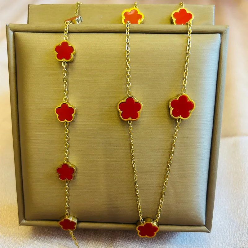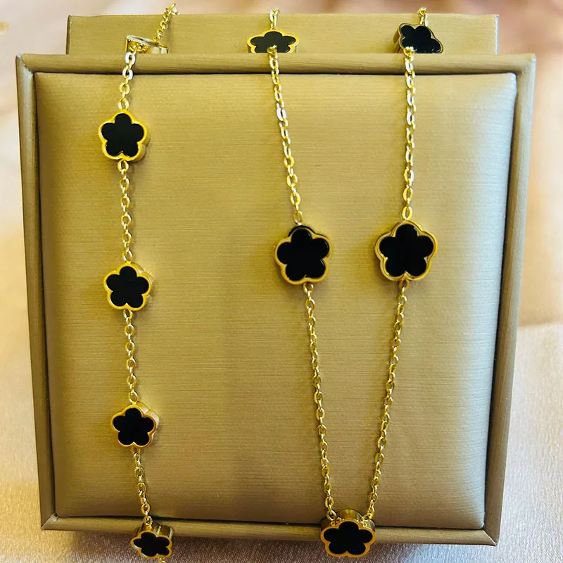 New Luxury 5 Flowers Charm Bracelet Necklace for Women Gift High Quality Stainless Steel Clover Jewelry Set Birthday Party