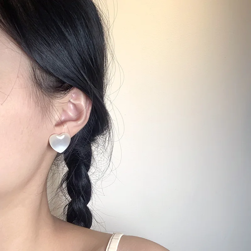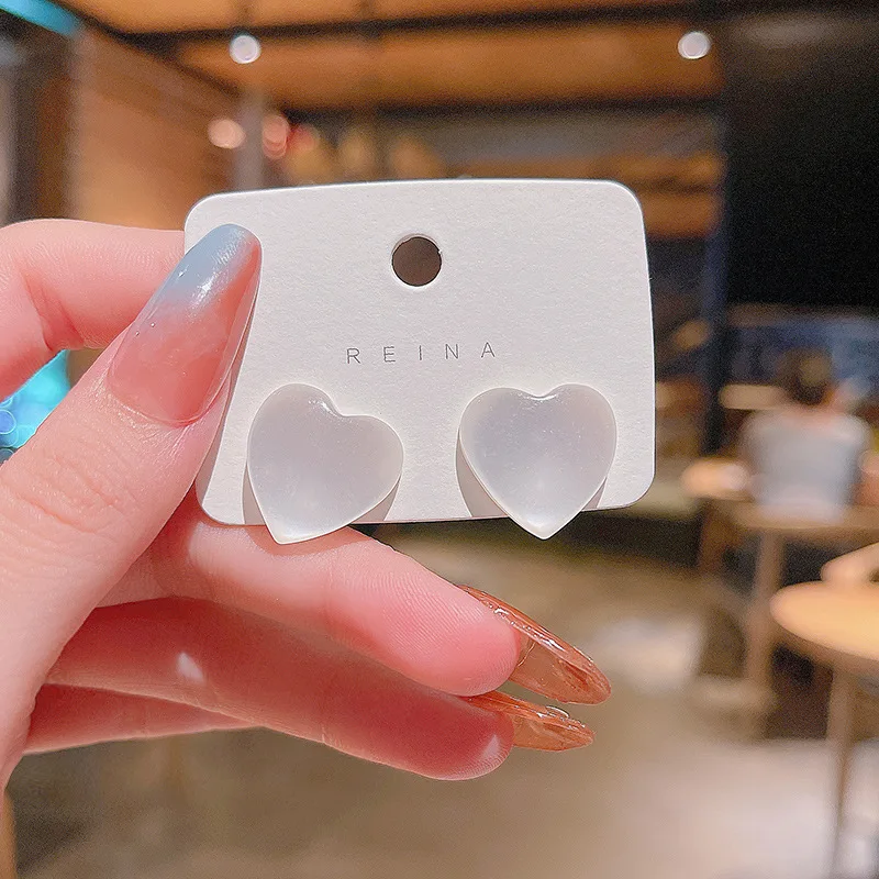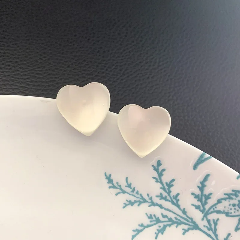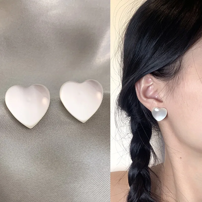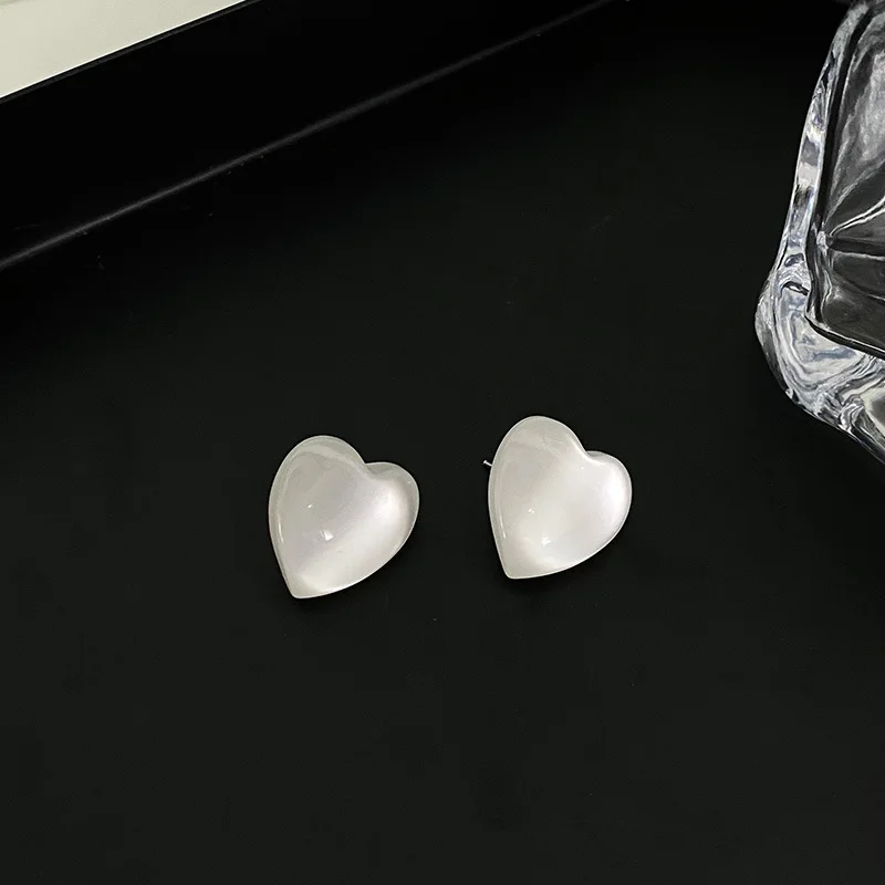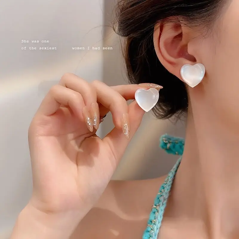 New Resin Heart MOONLIGHT Stud Earrings Women Korean Simple Imitation Opal Peach LOVE Brincos Jewelry Christmas Gift