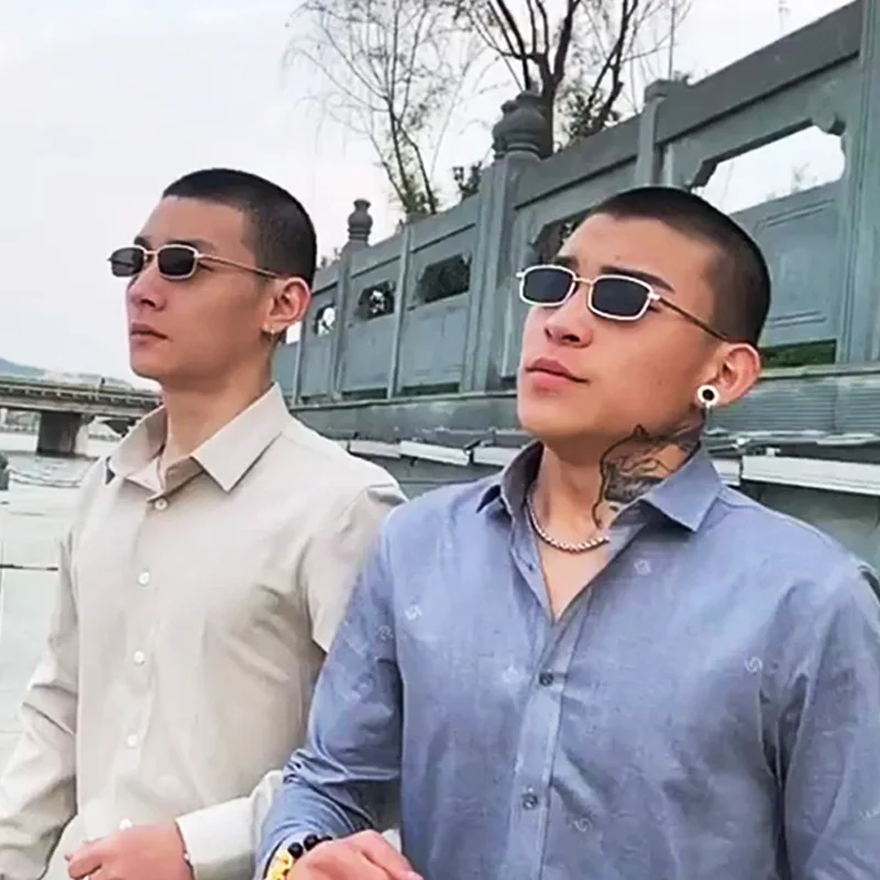 New Retro Small Rectangular Sunglasses 2023 Fashion Retro Metal Frame Sun Glasses for Men Women Small Square Sunglasses Summer