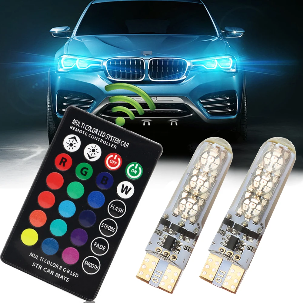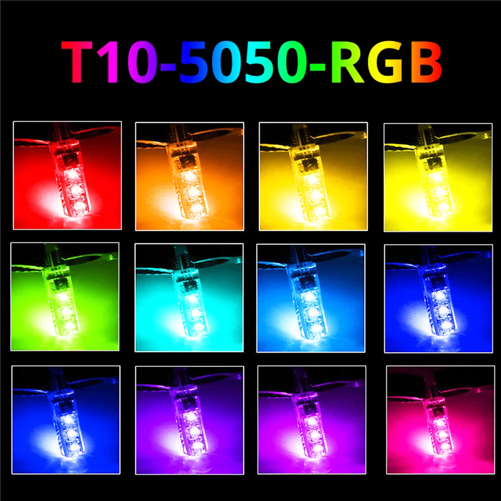 New T10 5050 6SMD DC 12V Waterproof W5W Remote Controller RGB 194 168 Dome Light Silicone Wedge Side Car Signal Atmosphere Bulb