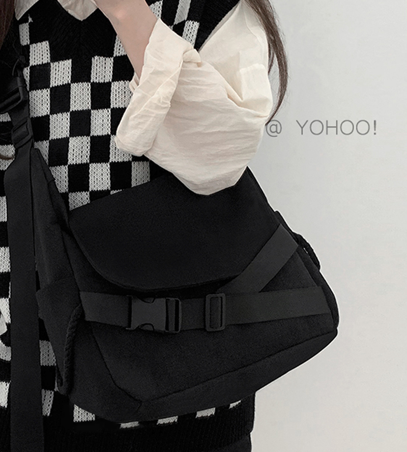 Original Yohoo Japanese Style Pure Black Shoulder Messenger Bag