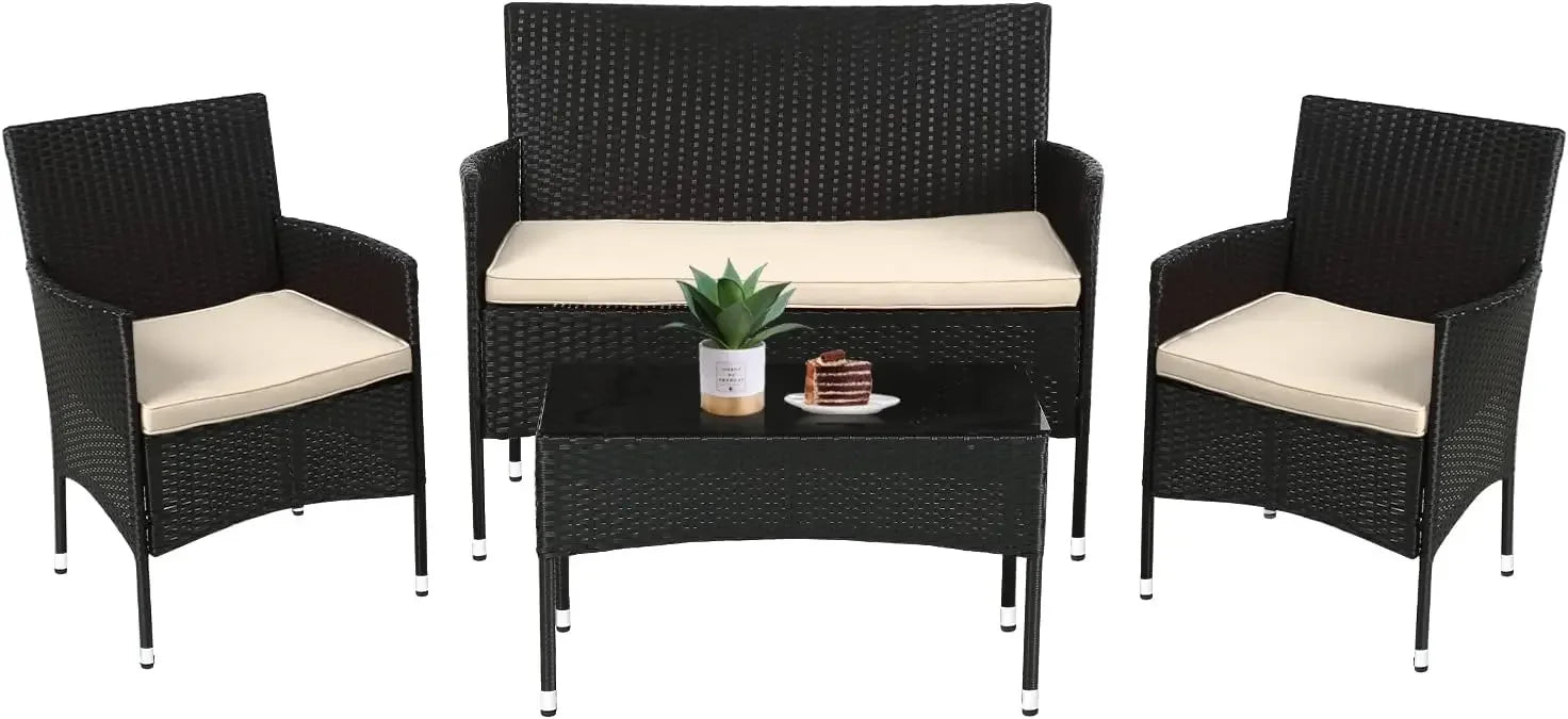 Patio Furniture Set 4 Pieces Outdoor Rattan Chair Wicker Sofa Garden Conversation Bistro Sets for Yard,Pool or Backyard