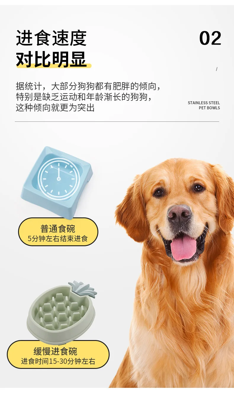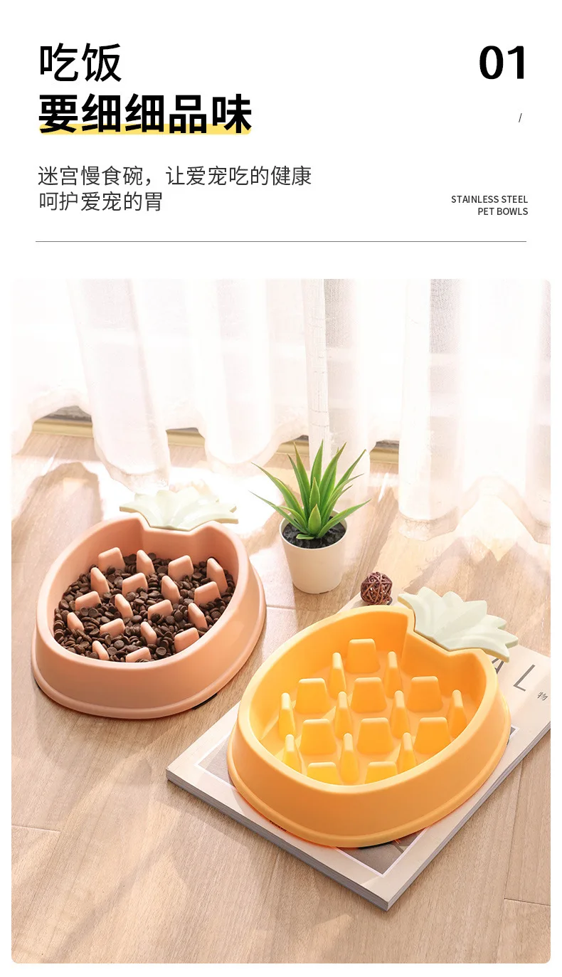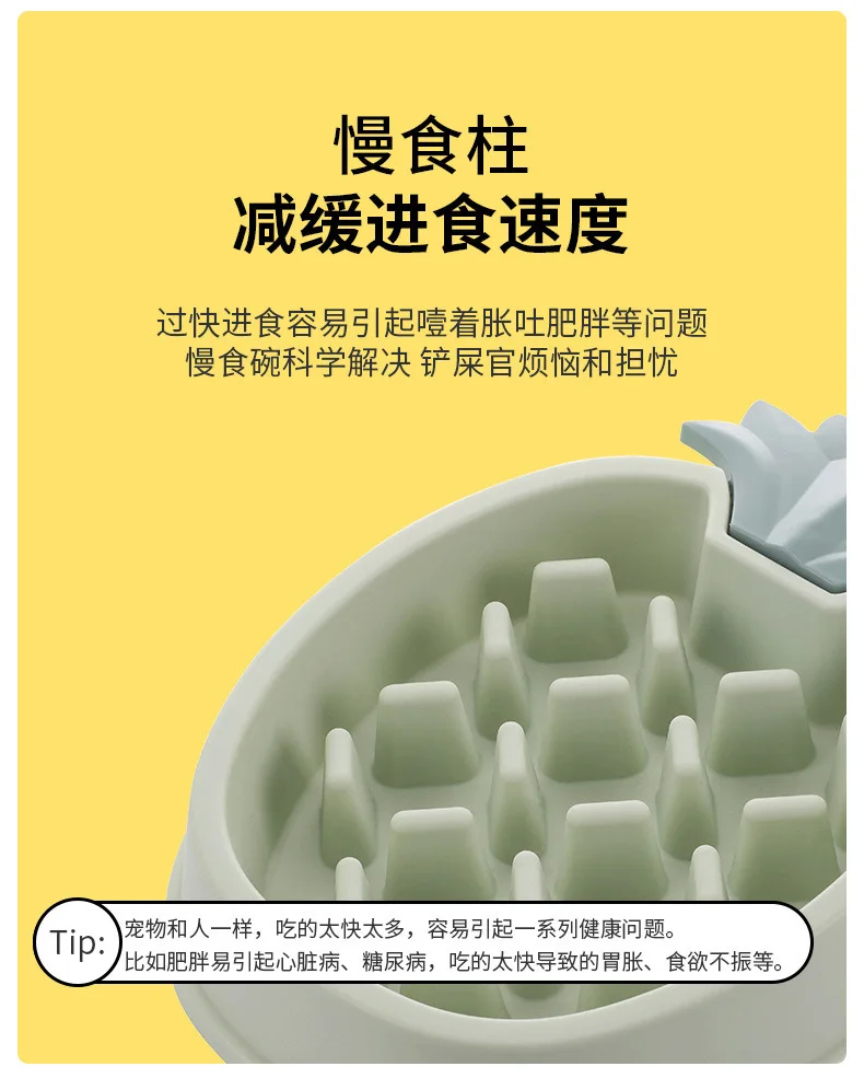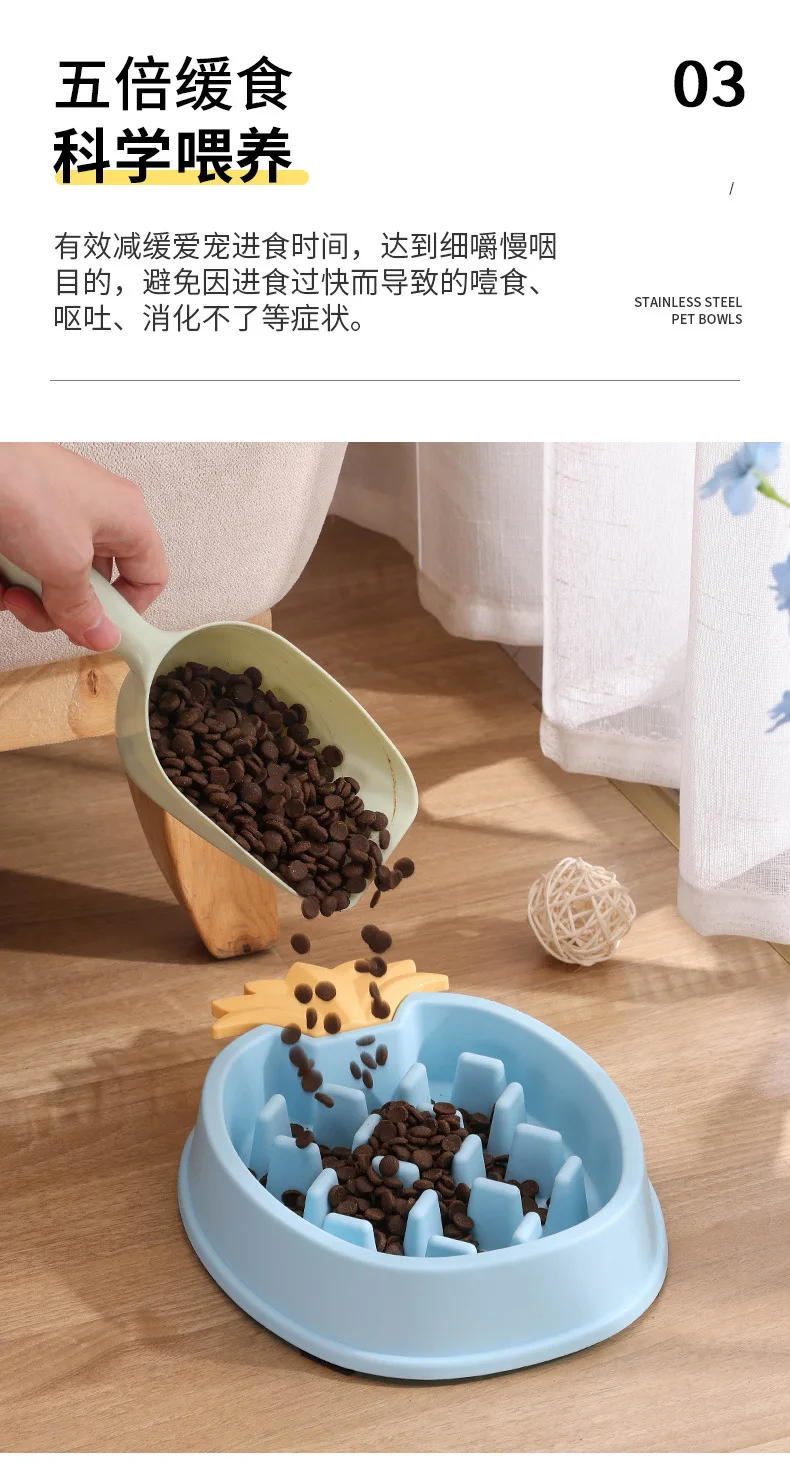 Slow down feeding The basic dog bowl has a unique maze design that separates food and slows down the speed of pet feeding. Prevent suffocation, obesity, and bloating, improve pet digestion. Eating slowly is healthier for your dog.