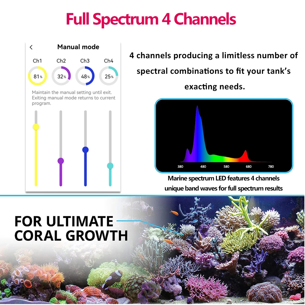 PopBloom RL90 WiFi Led Aquarium Light Full Spectrum,App Control Marine Aquarium Light for Reef Coral Seawater Aquarium Tank Lamp