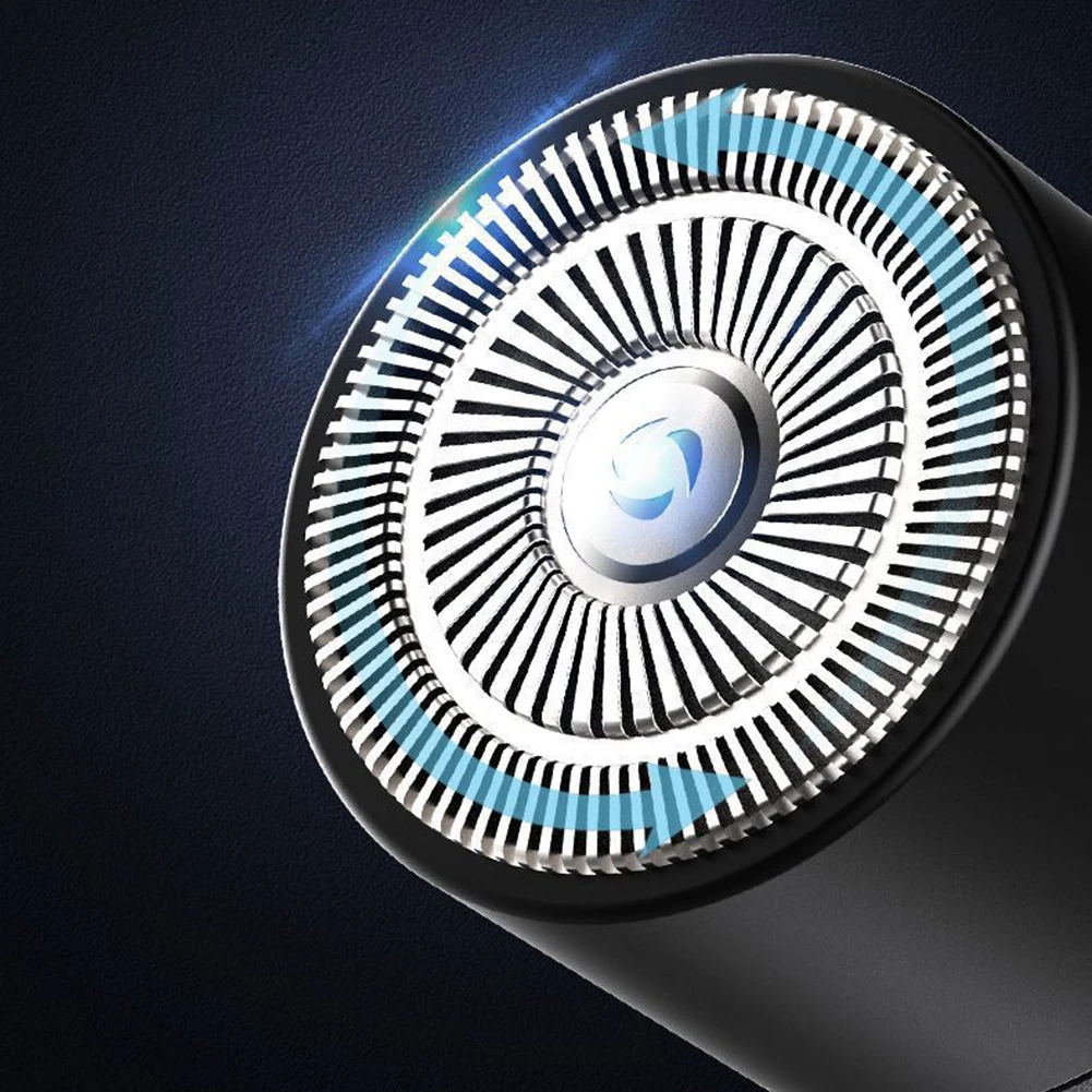 Portable Electric Shaving Tool USB Rechargeable Mini Face Beard Shaver Long Lasting Beard Shaving Machine Washable Floating Shave for Mens Long Haul/Business Travel Feature: 1. Advanced Blade Technology: Our electric shaver features an upgraded dual-ring floating arc surface blade that captures all directions of hair growth, providing a deep and clean shave while minimizing residue. 2. 360° Flexible Shaving: Our electric beard razor has a 360° flexible shaving head that adapts to different facial contours, ensuring a comfortable and thorough shave that leaves no stubble in corners or hard-to-reach areas. 3. Sharp and Durable Blades: Our electric shaving tool is equipped with self-developed 18-leaf blades that glide smoothly over the skin, cutting even the thickest beards without any snagging or tugging, leaving a smooth finish. 4. Powerful and Quiet Motor: Our face beard shaver uses a pure copper core motor that delivers powerful performance while maintaining a low noise level, ensuring a smooth and hassle-free shaving experience. 5. Convenient Charging: Our beard shaving machine comes with a mobile power supply that can be charged through USB ports on computers, cars, or wall adapters, making it easy and convenient to use anytime, anywhere. Specification: Item Type: Electric Shaver Certification: NONE Origin: Mainland China Gender: Male Power Type: Battery Use: Face Model Number: Electric Shaver Product main material: ABS+steel Charging method: USB (Type-C) Product size: 110x25x25mm/4.33x0.98x0.98inch Product weight: 46 g Product color: blue, black (optional) Note: