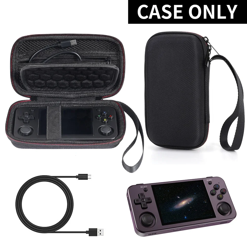 Protective Case Shockproof with Mesh Pocket for SD Card USB Type-C Cable for Anbernic RG35XX H/RG353M Handheld Game Console
