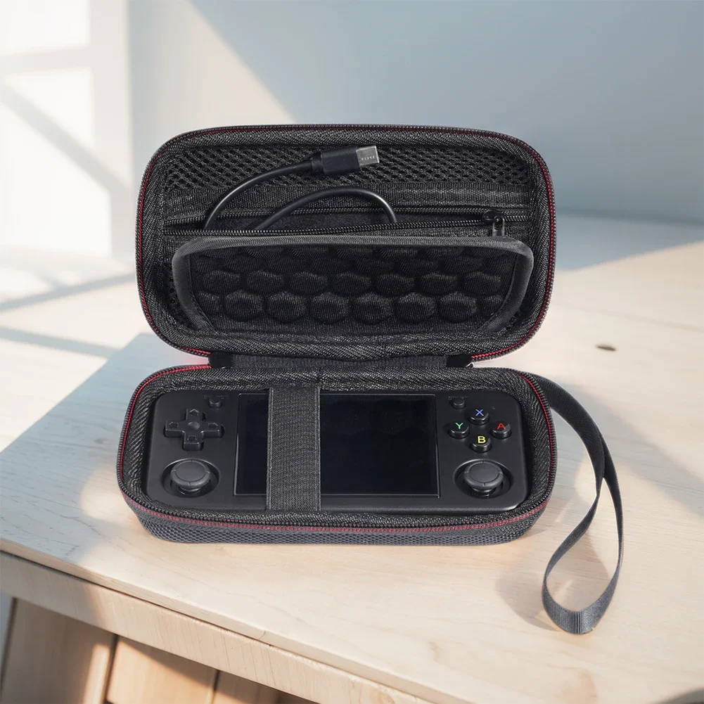 1.Tailored Design: Specifically designed for Anbernic RG35XX H/RG353M retro handheld game console, this hard carrying case is meticulously crafted using real machine molds, ensuring a perfect fit. Specification: Origin: Mainland China Color: Black Material: EVA polyester cloth + anti-scratch partition + velvet lining Features: Portable, shockproof, drop-proof, splash-proof Applicable: For Anbernic RG35XX H/RG353M Handheld Game Console, can store its SD card and data cable accessories Size: 165.00x95.00x50.00mm Weight: about 110g